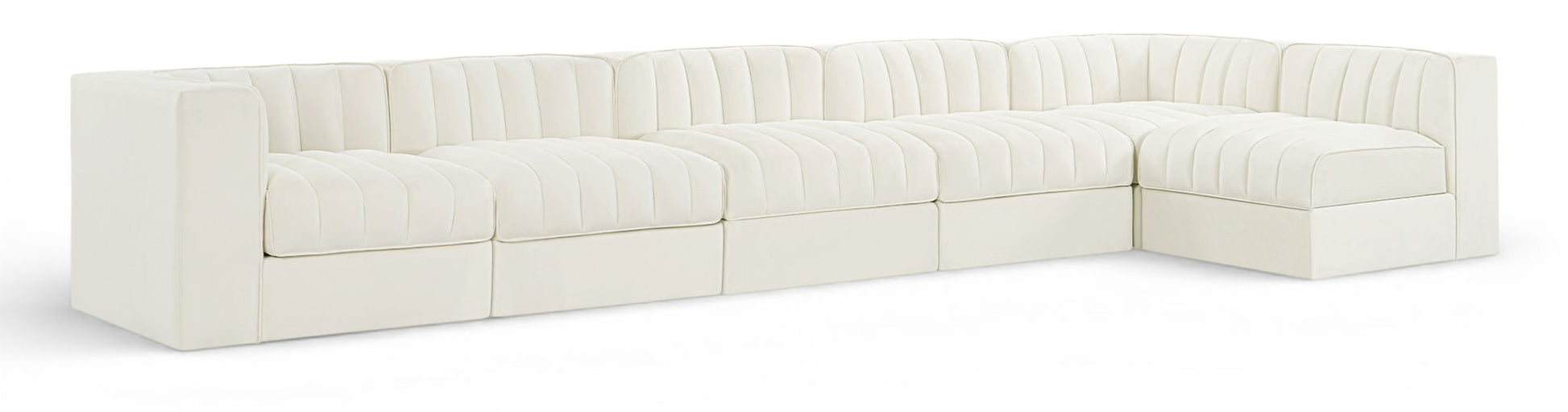 Rummi - Velvet Performance Fabric Upholstered 6 Piece Modular Sectional, L-Shaped (Right) - Cream