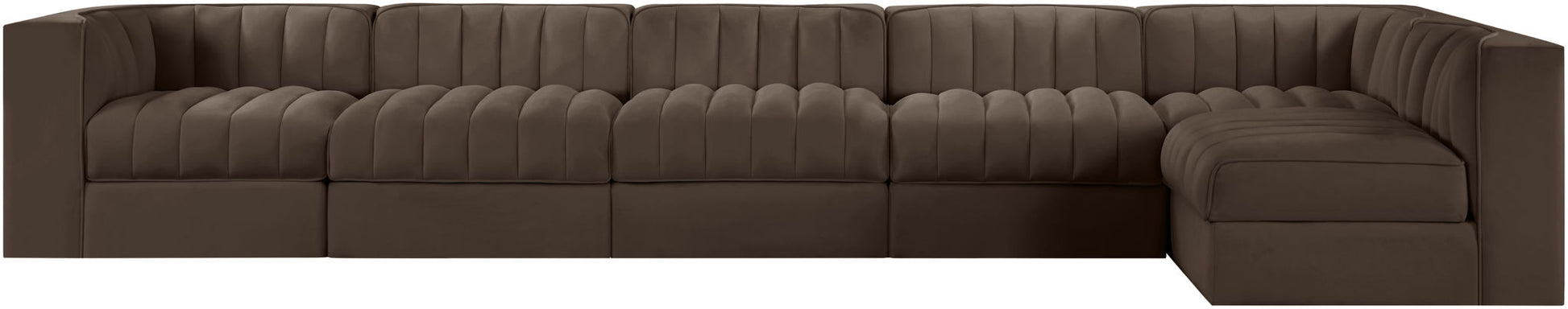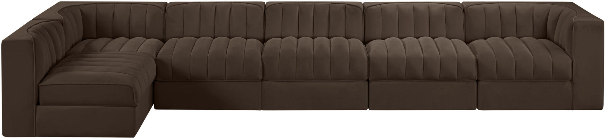 Rummi - Velvet Performance Fabric Upholstered 6 Piece Modular Sectional, L-Shaped (Right) - Brown
