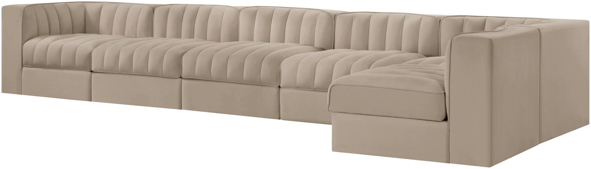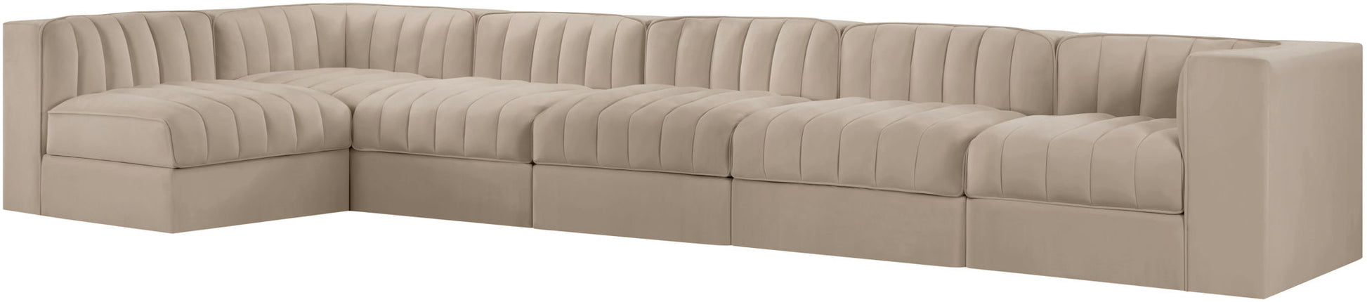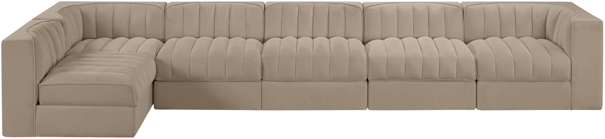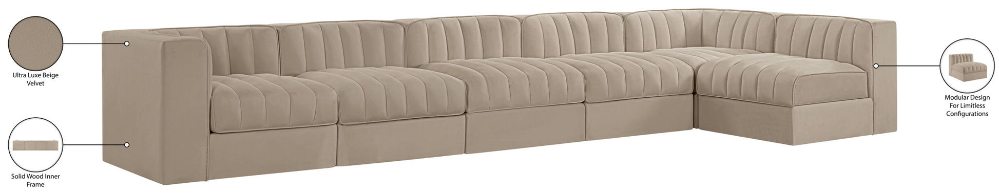 Rummi - Velvet Performance Fabric Upholstered 6 Piece Modular Sectional, L-Shaped (Right) - Beige