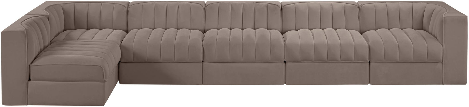 Rummi - Velvet Performance Fabric Upholstered 6 Piece Modular Sectional, L-Shaped (Right) - Taupe