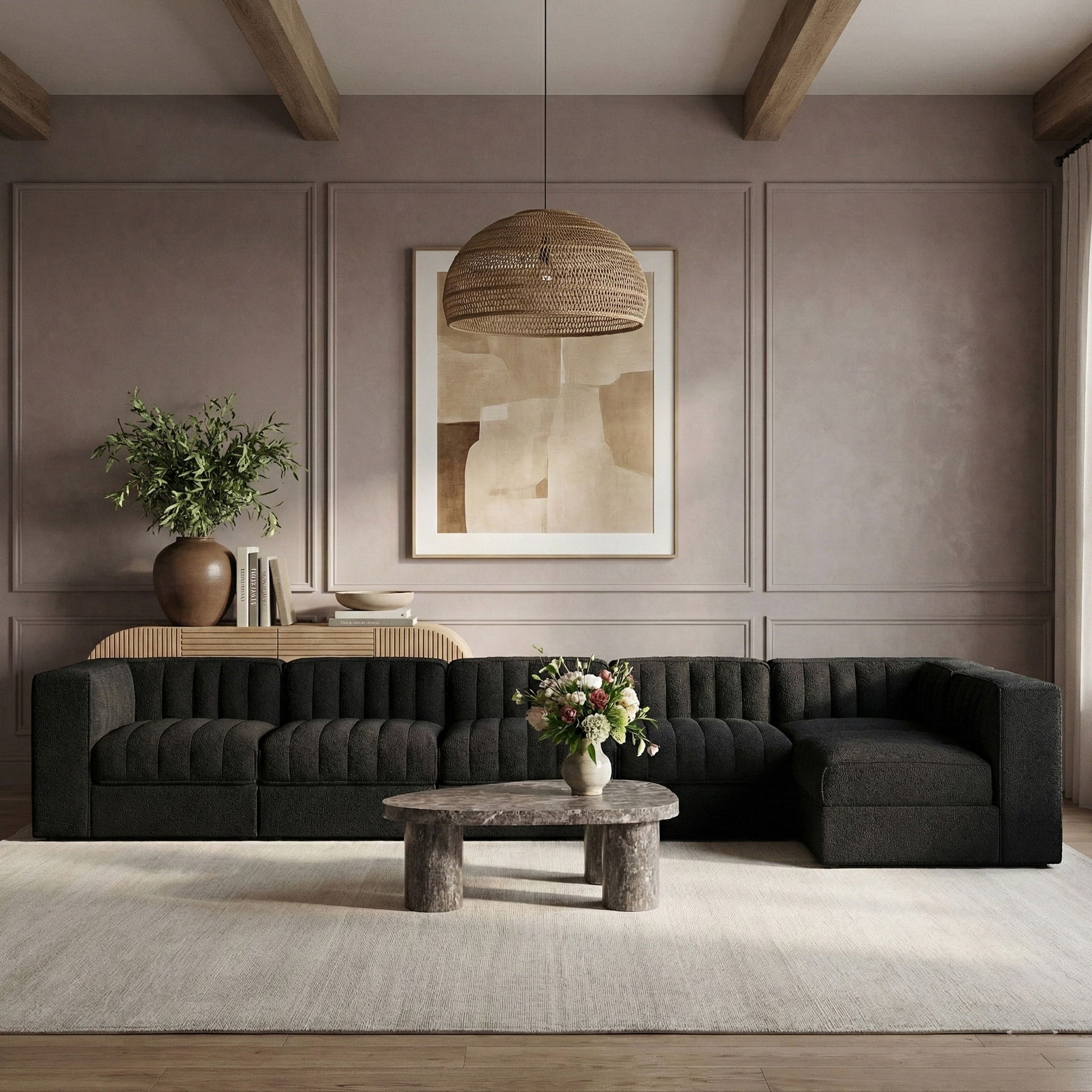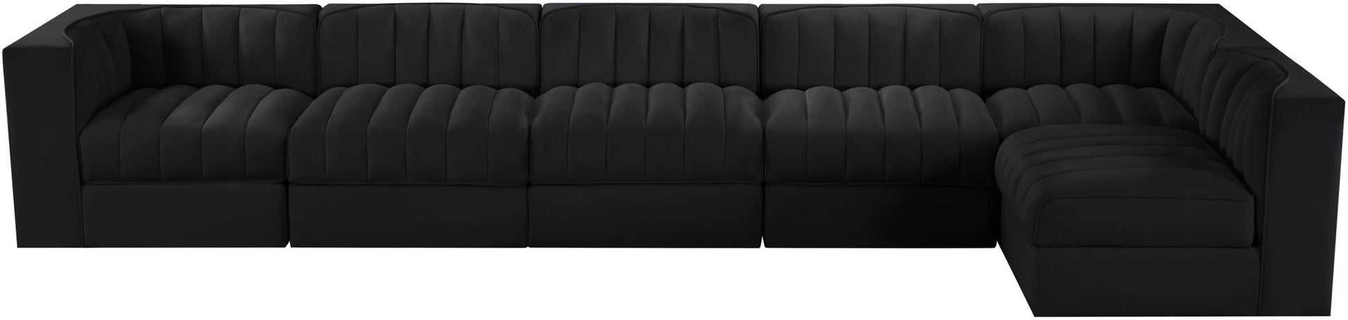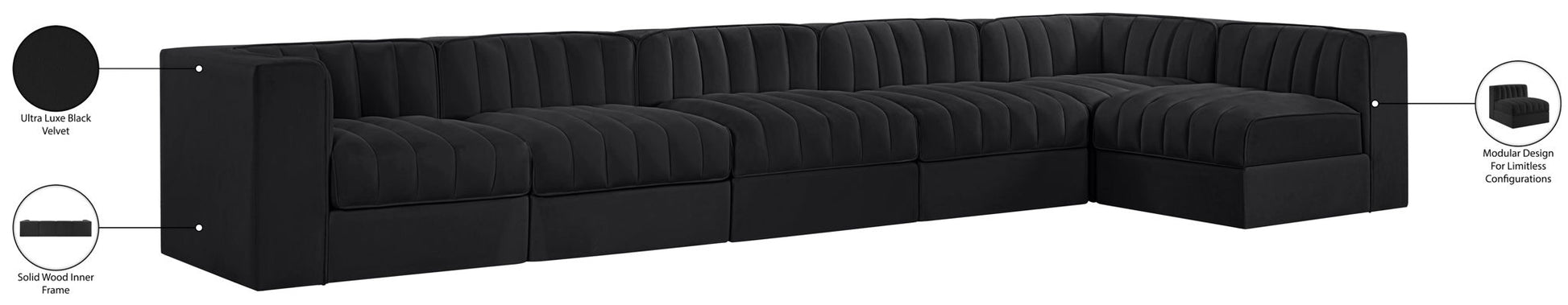 Rummi - Velvet Performance Fabric Upholstered 6 Piece Modular Sectional, L-Shaped (Right) - Black