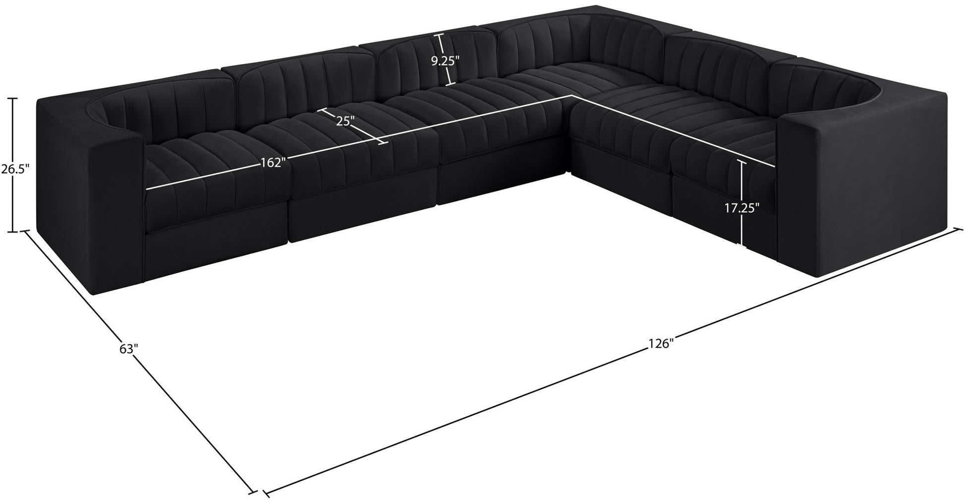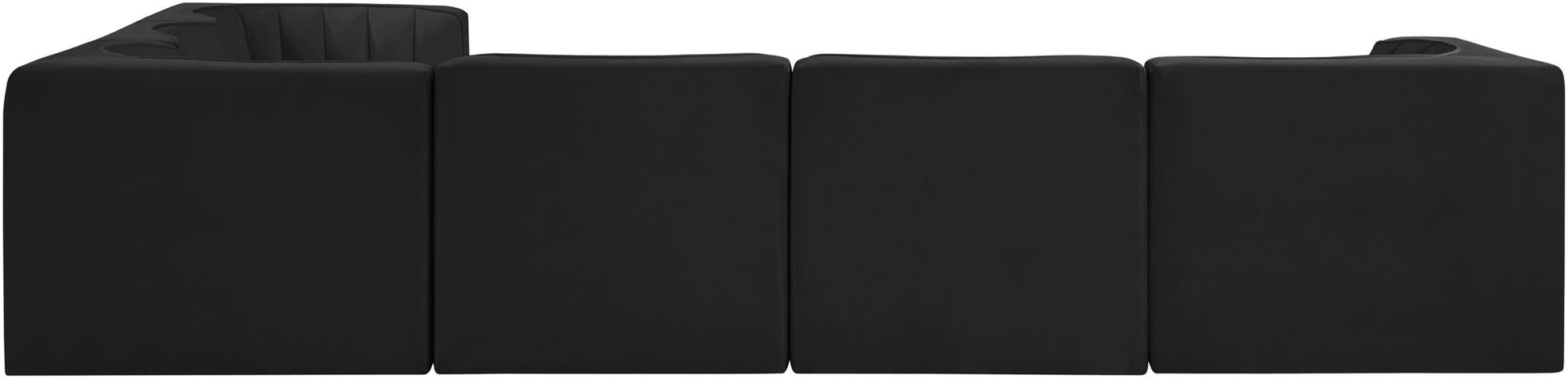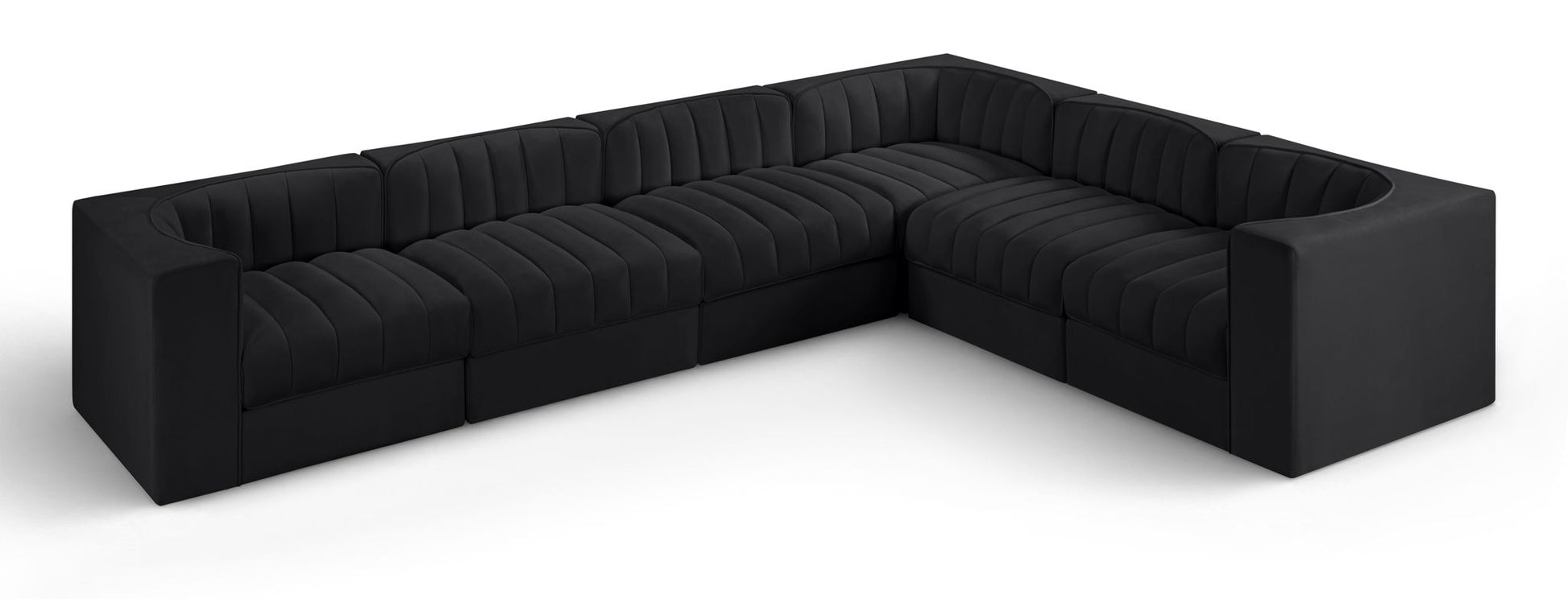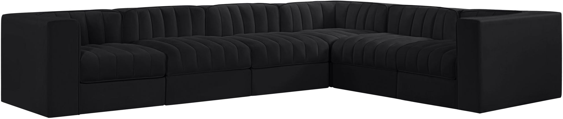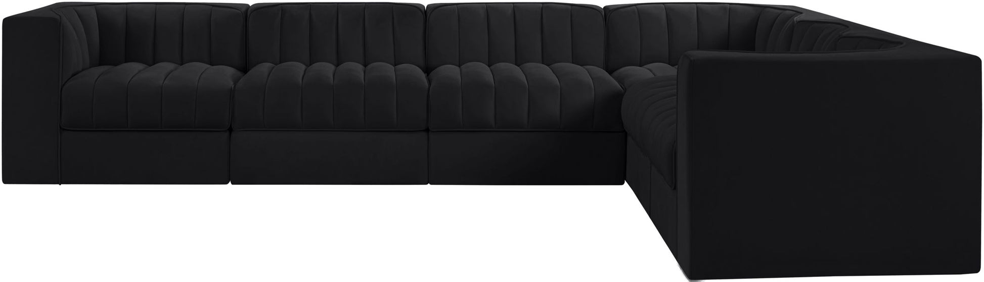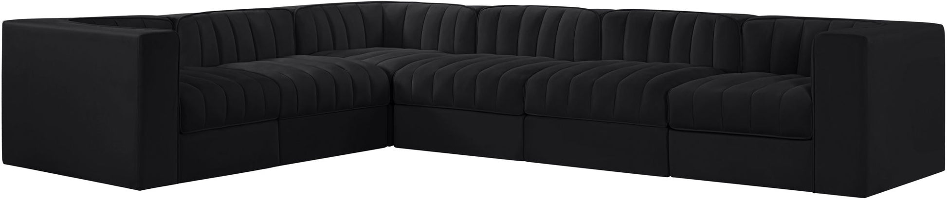 Rummi - Velvet Performance Fabric Upholstered 6 Piece Modular Sectional (With 3 Corner Chairs) - Black