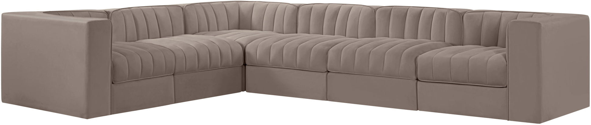 Rummi - Velvet Performance Fabric Upholstered 6 Piece Modular Sectional (With 3 Corner Chairs) - Taupe