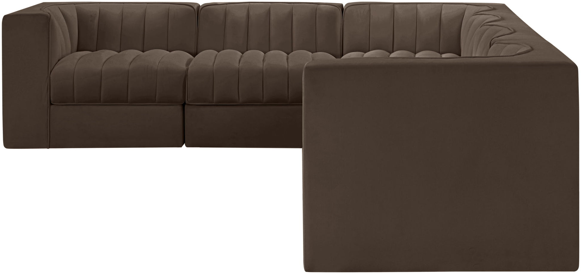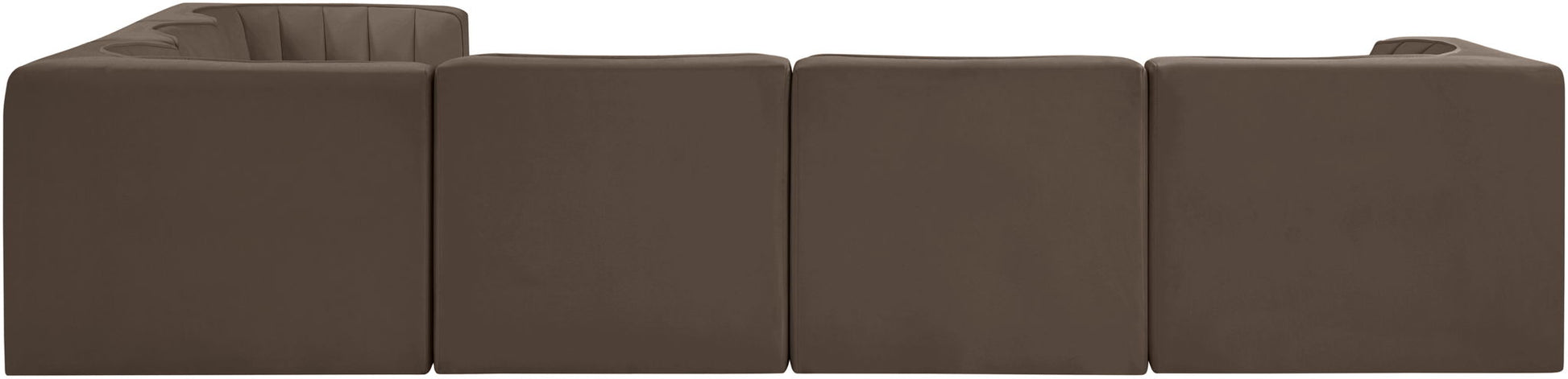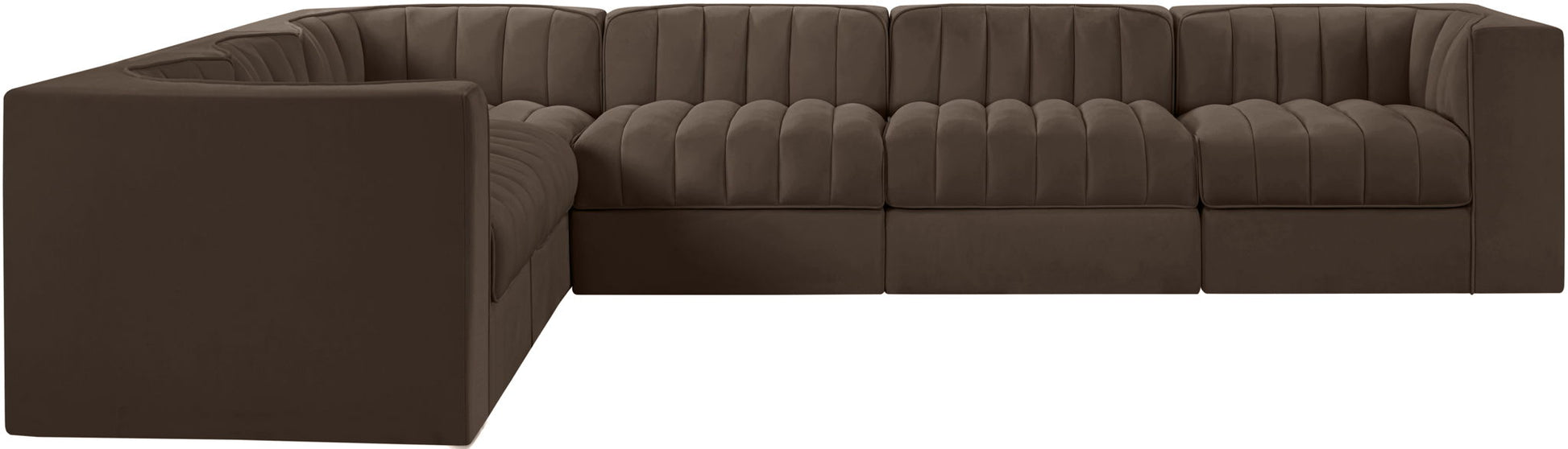 Rummi - Velvet Performance Fabric Upholstered 6 Piece Modular Sectional (With 3 Corner Chairs) - Brown