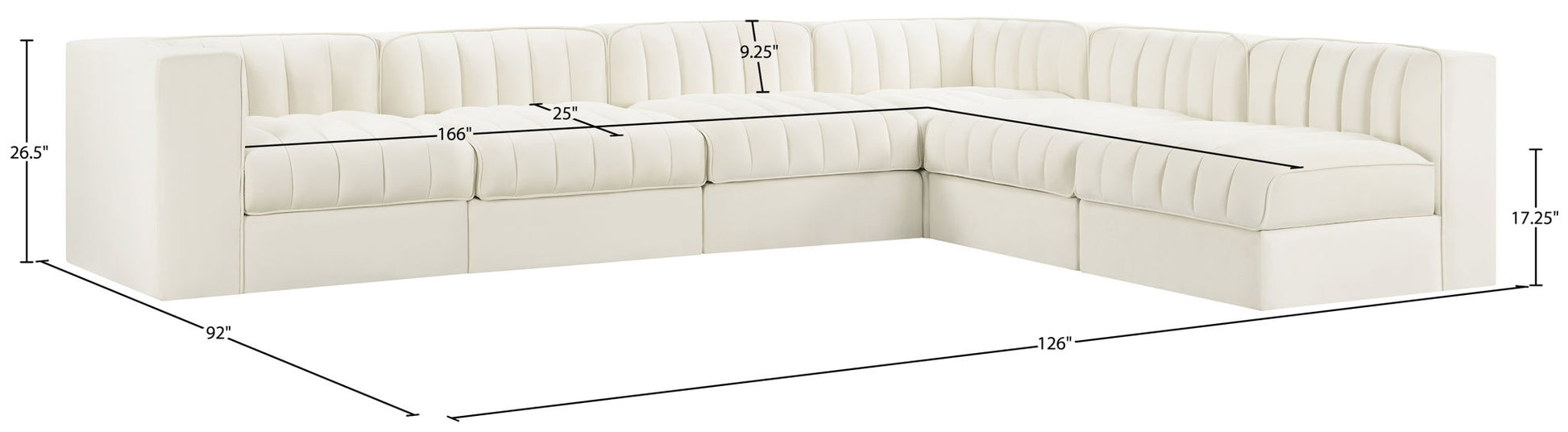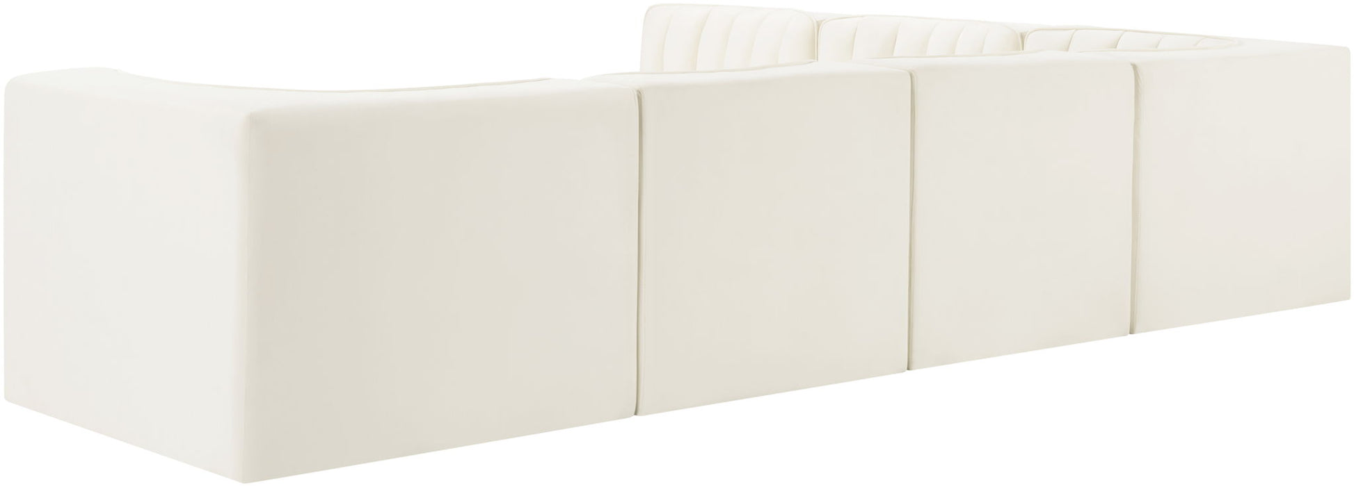 Rummi - Velvet Performance Fabric Upholstered 6 Piece Modular Sectional (With 3 Corner Chairs) - Cream