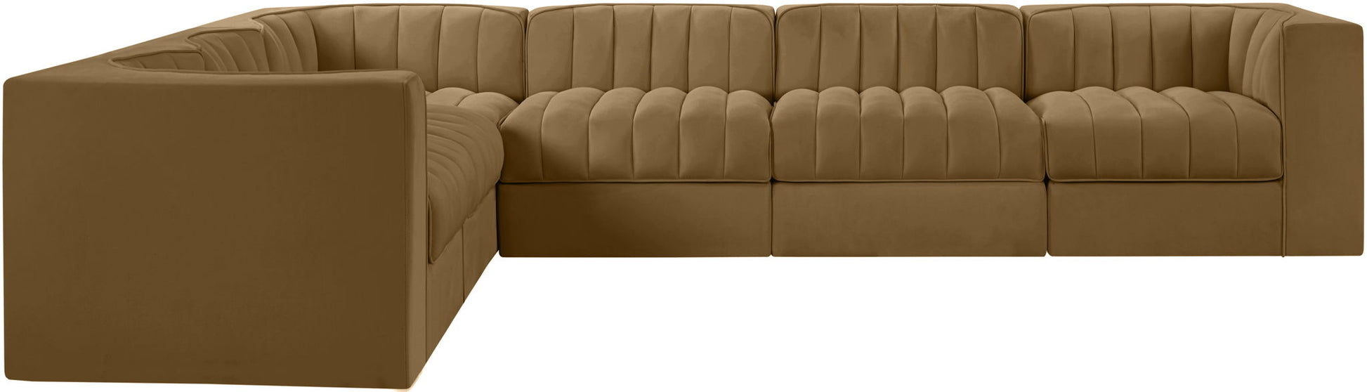 Rummi - Velvet Performance Fabric Upholstered 6 Piece Modular Sectional (With 3 Corner Chairs) - Saddle