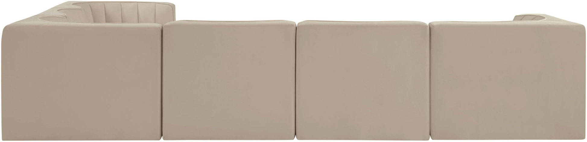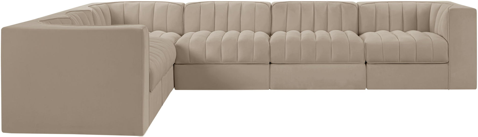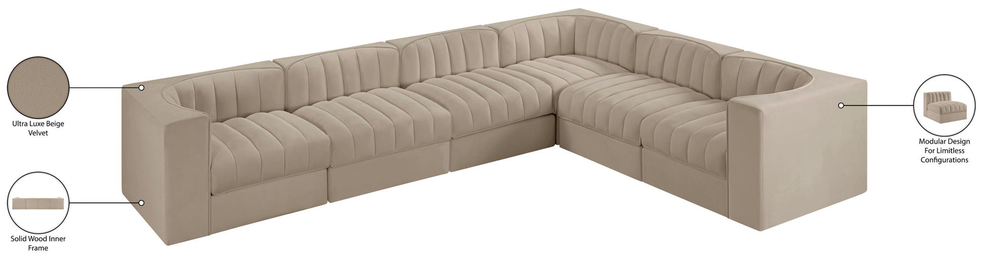 Rummi - Velvet Performance Fabric Upholstered 6 Piece Modular Sectional (With 3 Corner Chairs) - Beige