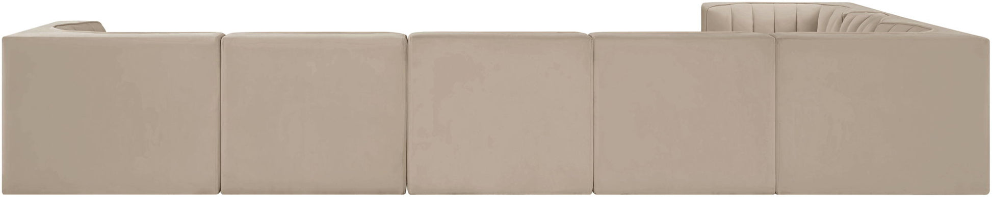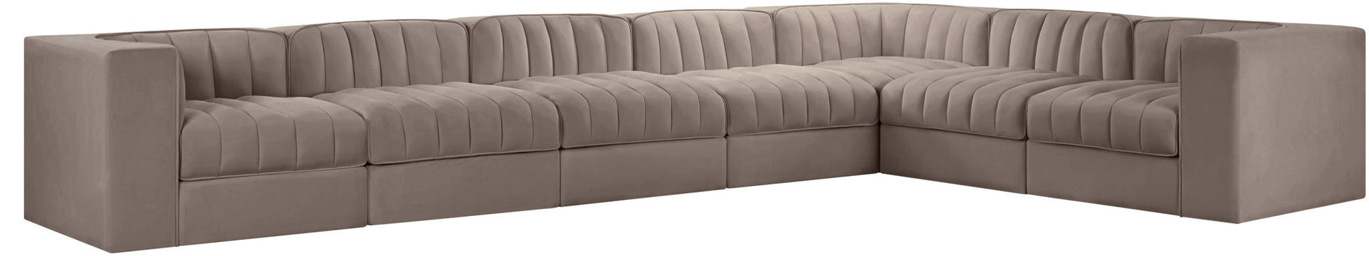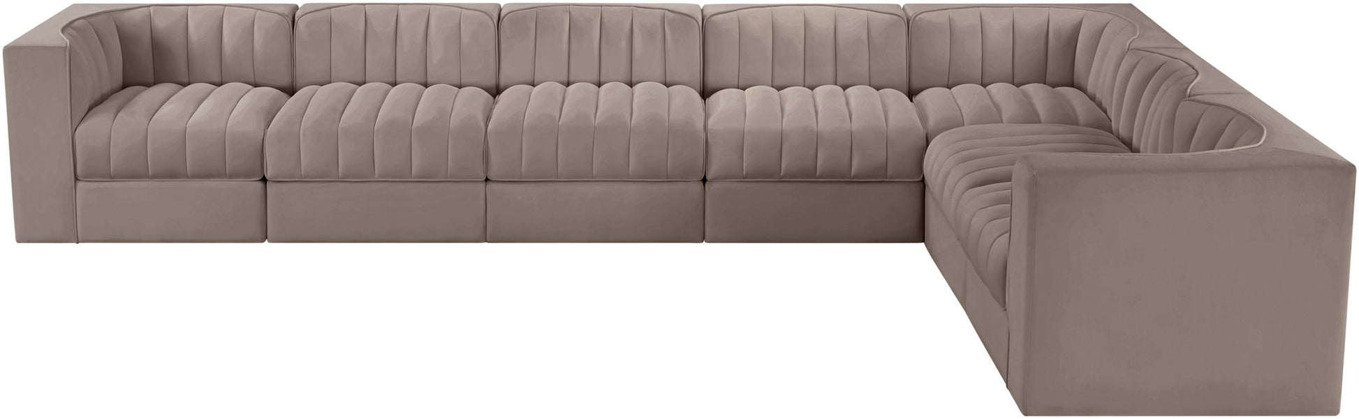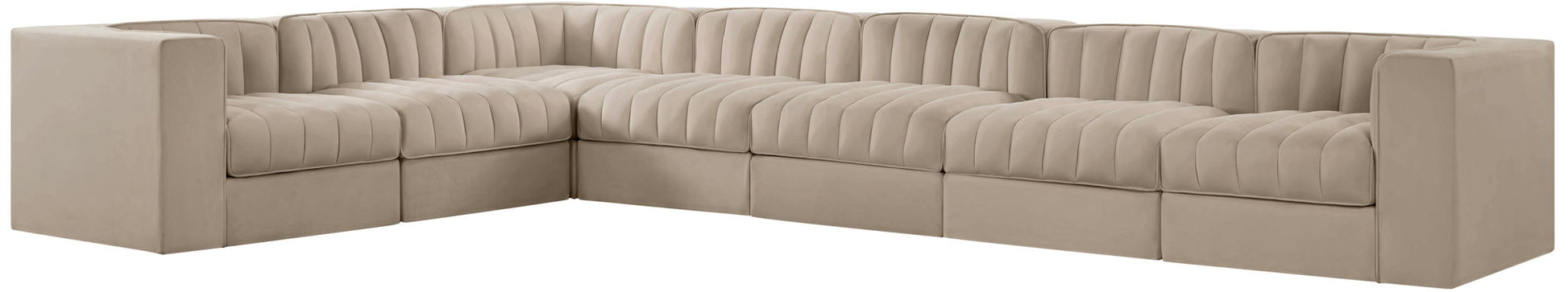 Rummi - Velvet Performance Fabric Upholstered 7 Piece Modular Sectional (With 3 Corner Chairs) - Beige