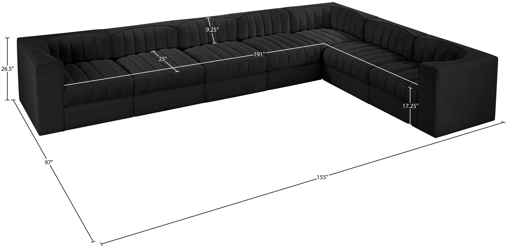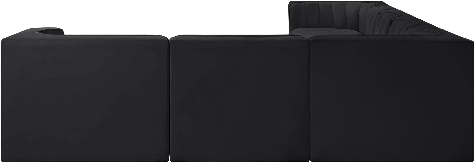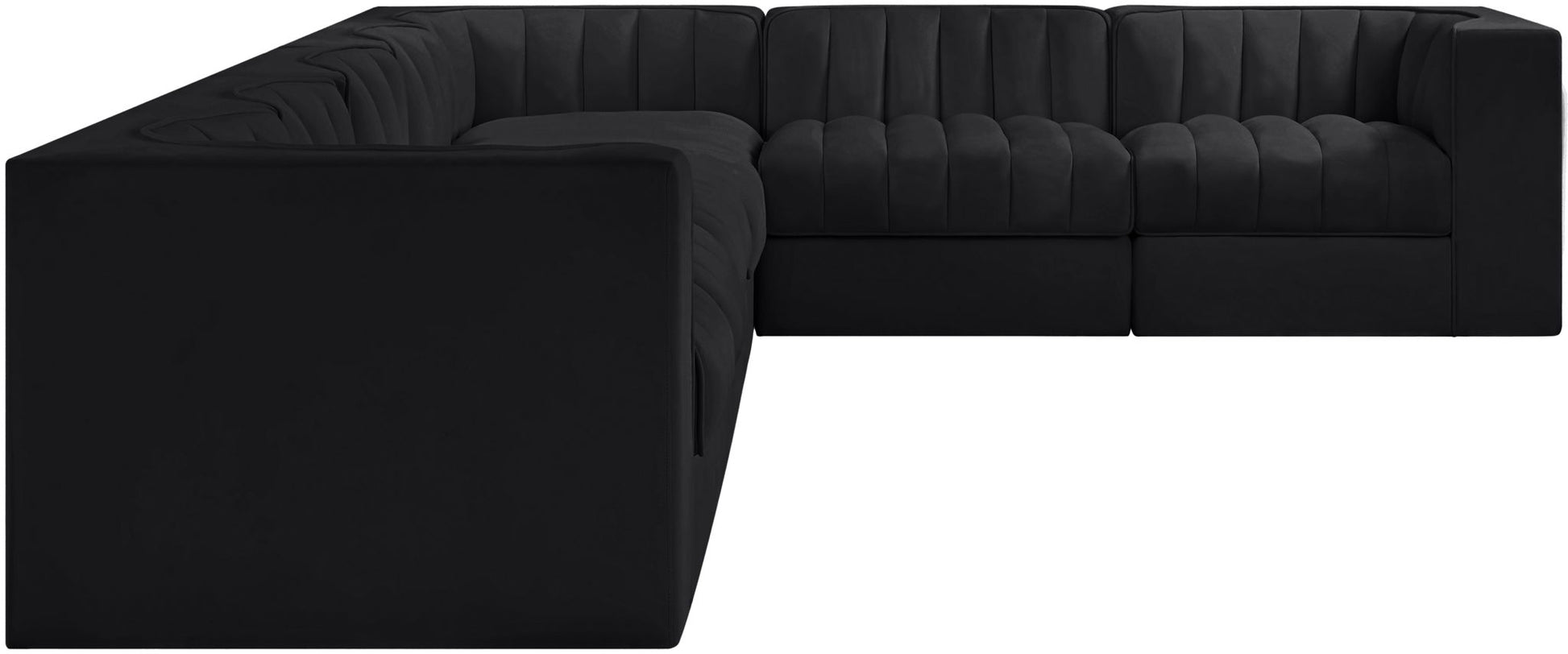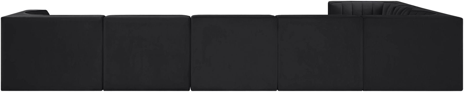 Rummi - Velvet Performance Fabric Upholstered 7 Piece Modular Sectional (With 3 Corner Chairs) - Black