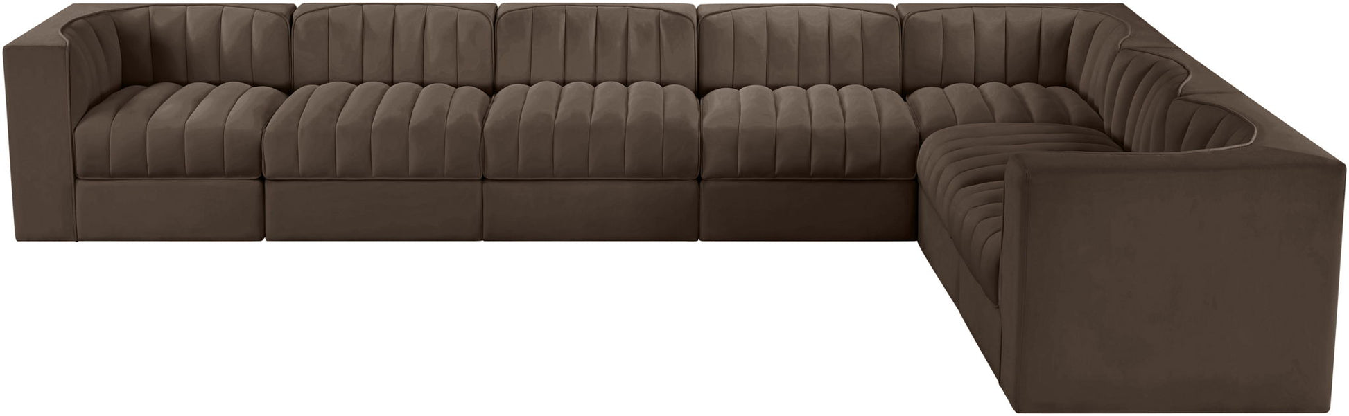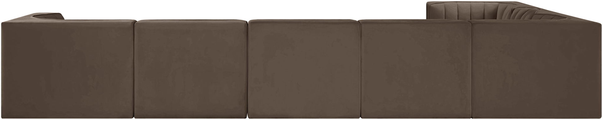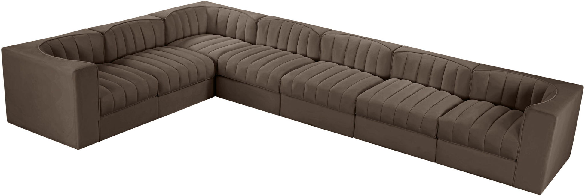 Rummi - Velvet Performance Fabric Upholstered 7 Piece Modular Sectional (With 3 Corner Chairs) - Brown
