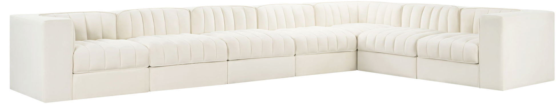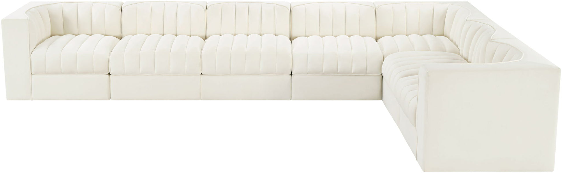 Rummi - Velvet Performance Fabric Upholstered 7 Piece Modular Sectional (With 3 Corner Chairs) - Cream