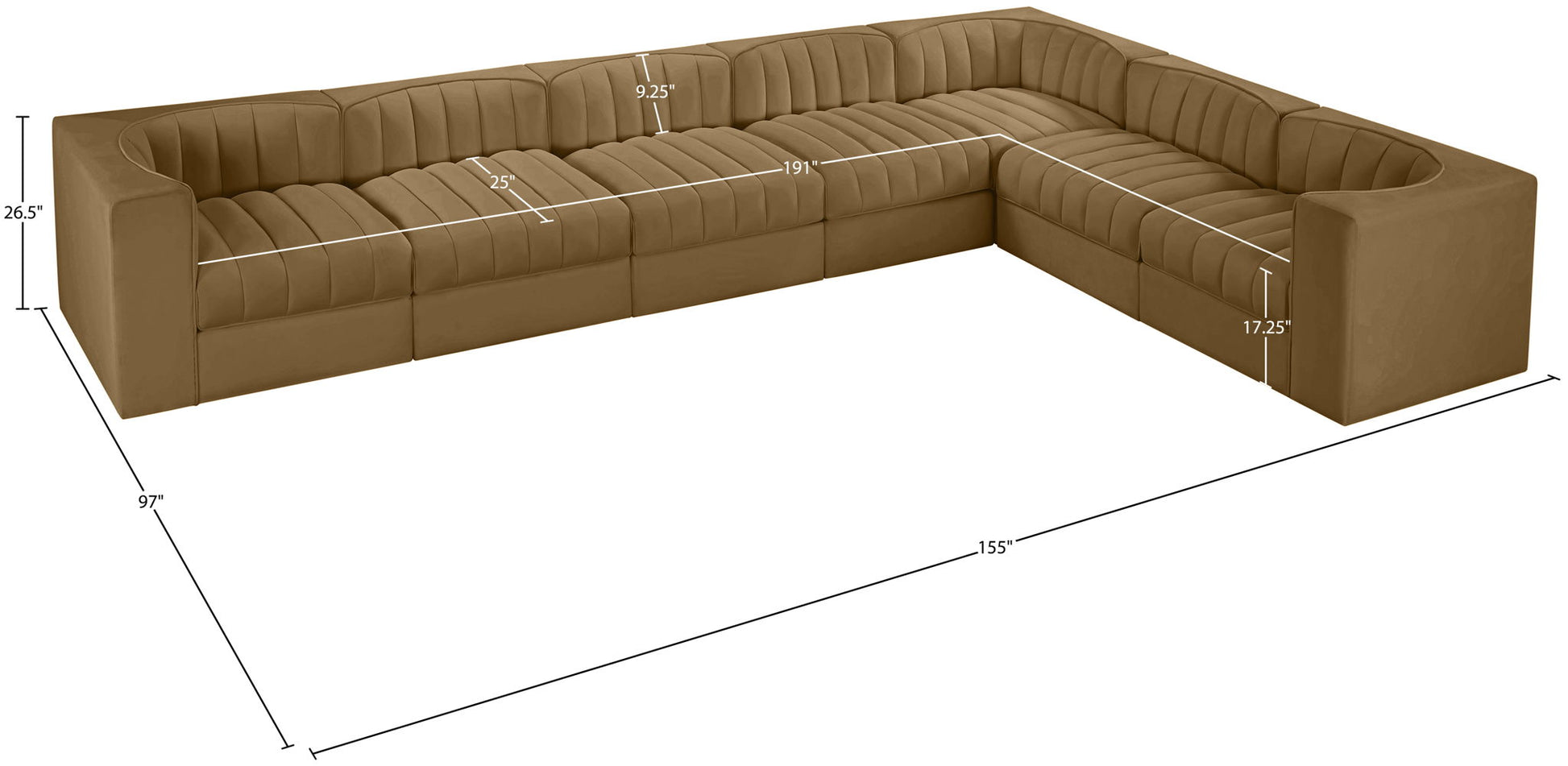 Rummi - Velvet Performance Fabric Upholstered 7 Piece Modular Sectional (With 3 Corner Chairs) - Saddle