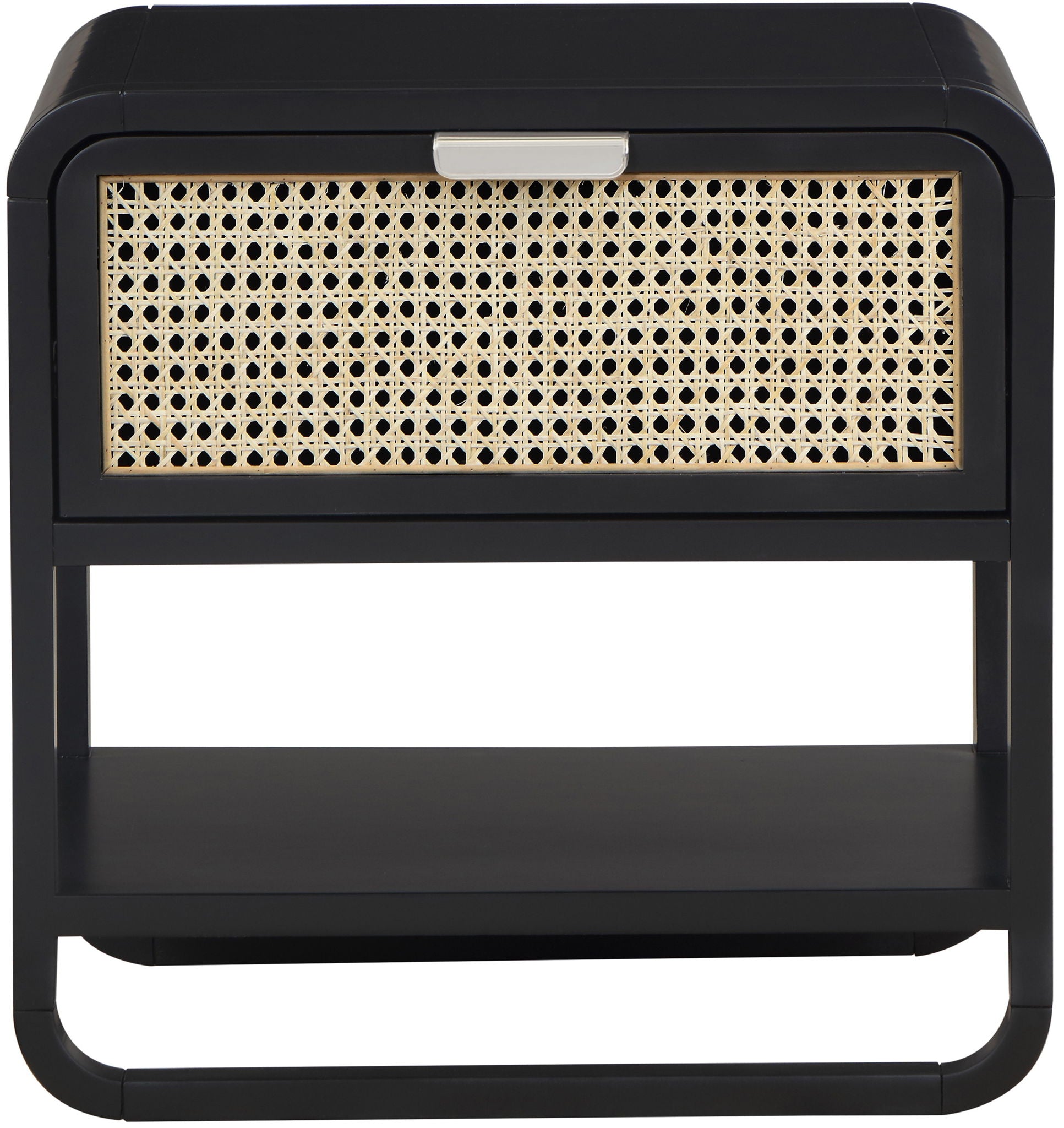 Add a natural touch to your bedroom space with this Sage wood veneer night stand from Meridian Furniture. This rectangular night stand features rich ash wood veneer with a finish, ensuring it complements your existing bedroom decor. A natural cane drawer front gives a unique touch to this piece, as well as providing you with plenty of storage space. A shelf beneath the drawer provides additional storage space if needed.