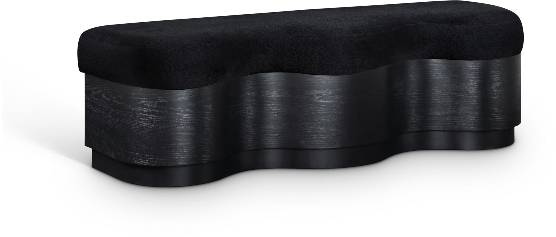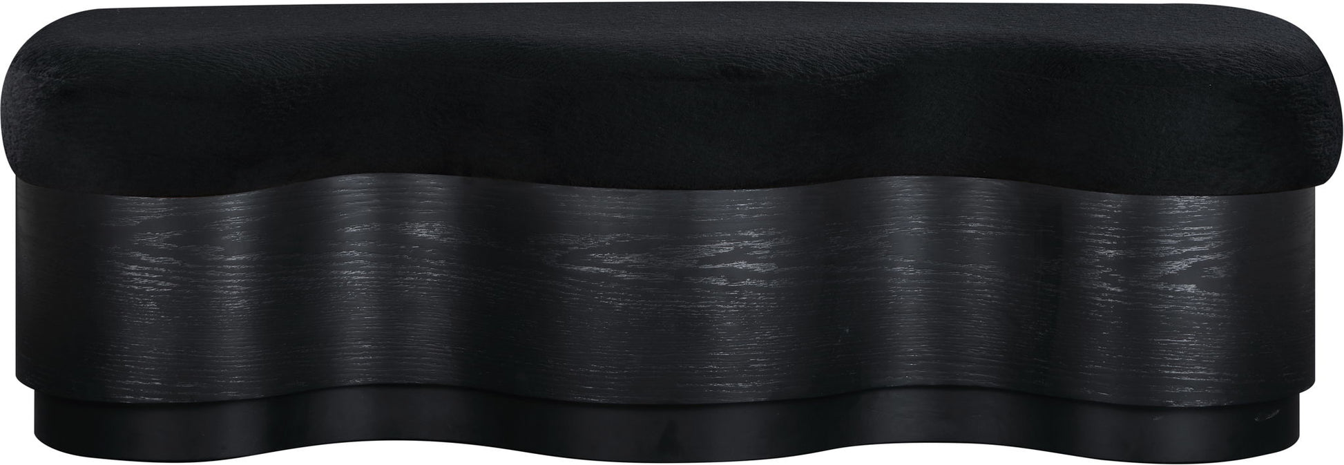 The bold and artistic Savoy velour fur fabric upholstered bench brings a unique wave-like design to your space. Plush velour fur fabric atop creates a soft, luxurious seating experience, while the sculptural wooden base in a rich finish adds a playful yet sophisticated touch. Perfect for those seeking to make a statement, it blends form and function, offering comfort and style in one eye-catching piece.
