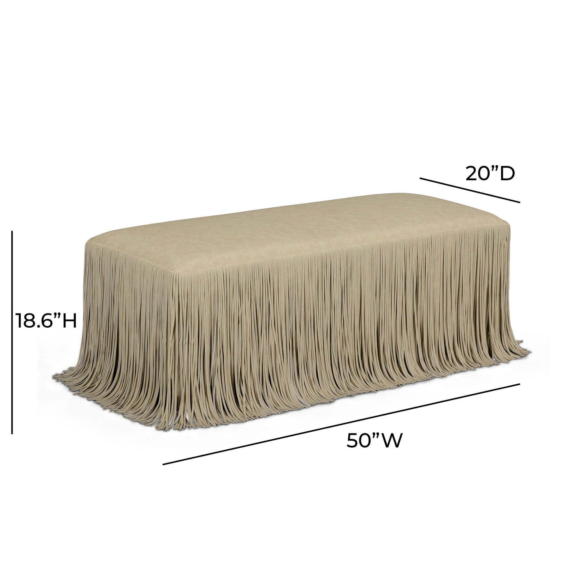 Add a little indulgence to your space with the Shag Me Vegan Leather Bench. Upholstered in smooth vegan leather and finished with playful tassel detailing, this piece brings texture, softness, and personality into any room. Designed to stand on its own or style seamlessly with the rest of the Shag Me collection, it delivers a lush visual without sacrificing everyday comfort. Easy clean, contract grade, performance upholstery ensures it looks just as good after years of living as it does on day one.