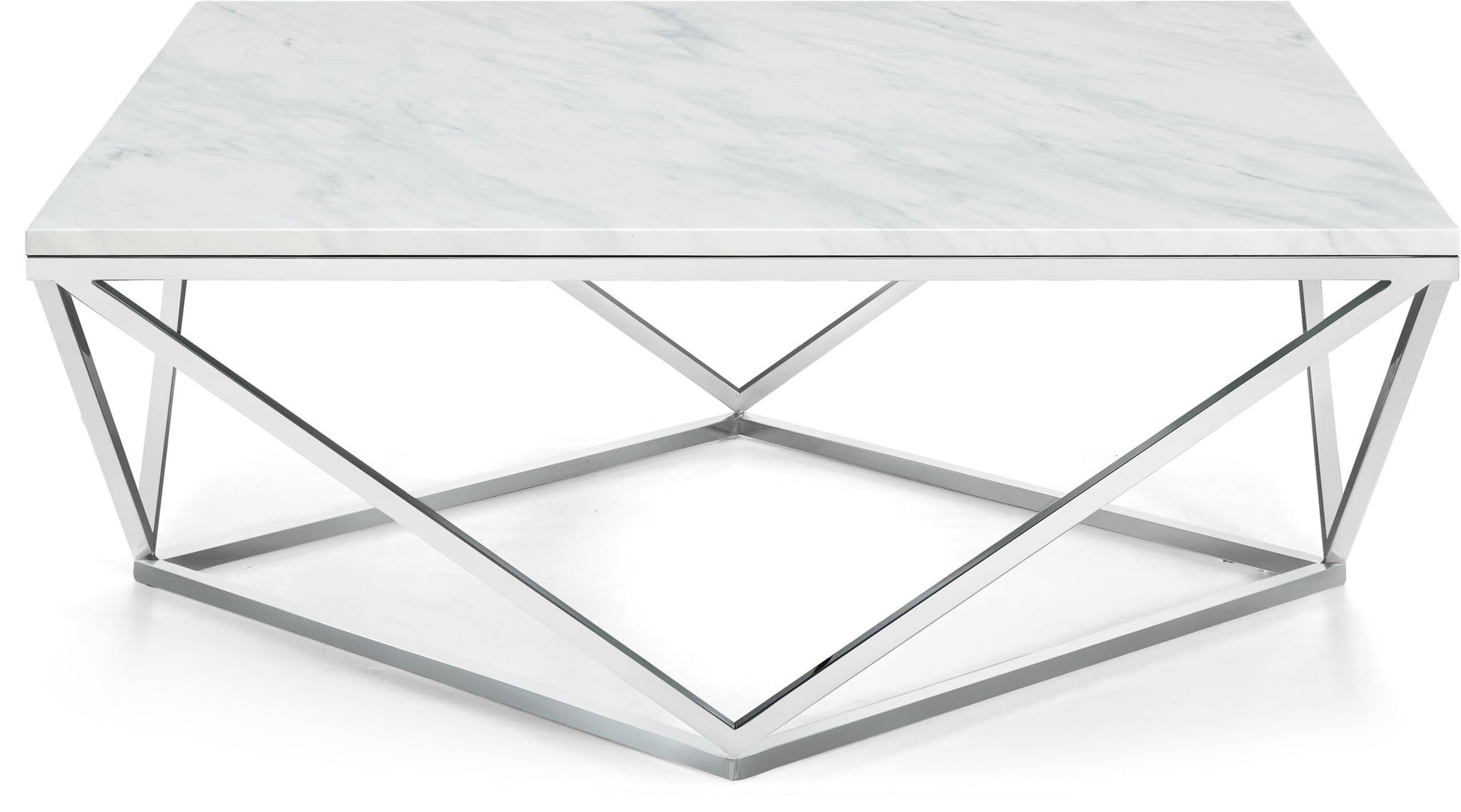 Keep the modern vibe going with this Skyler stainless steel coffee table from Meridian Furniture. This coffee table features architectural bases with a sculptural design that's chic and contemporary. The tops of each table feature solid stone tops for durability and remarkable style.