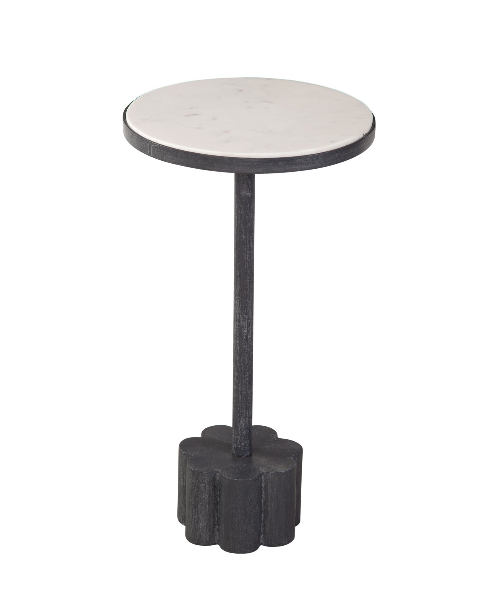 The Sprout Accent Table is a captivating blend of modern elegance and timeless charm. Its white marble top exudes sophistication, beautifully contrasting with the black iron metal frame, which adds a bold touch to the design. The scalloped base not only provides stability but also enhances its unique character, making it a standout piece in any room.
