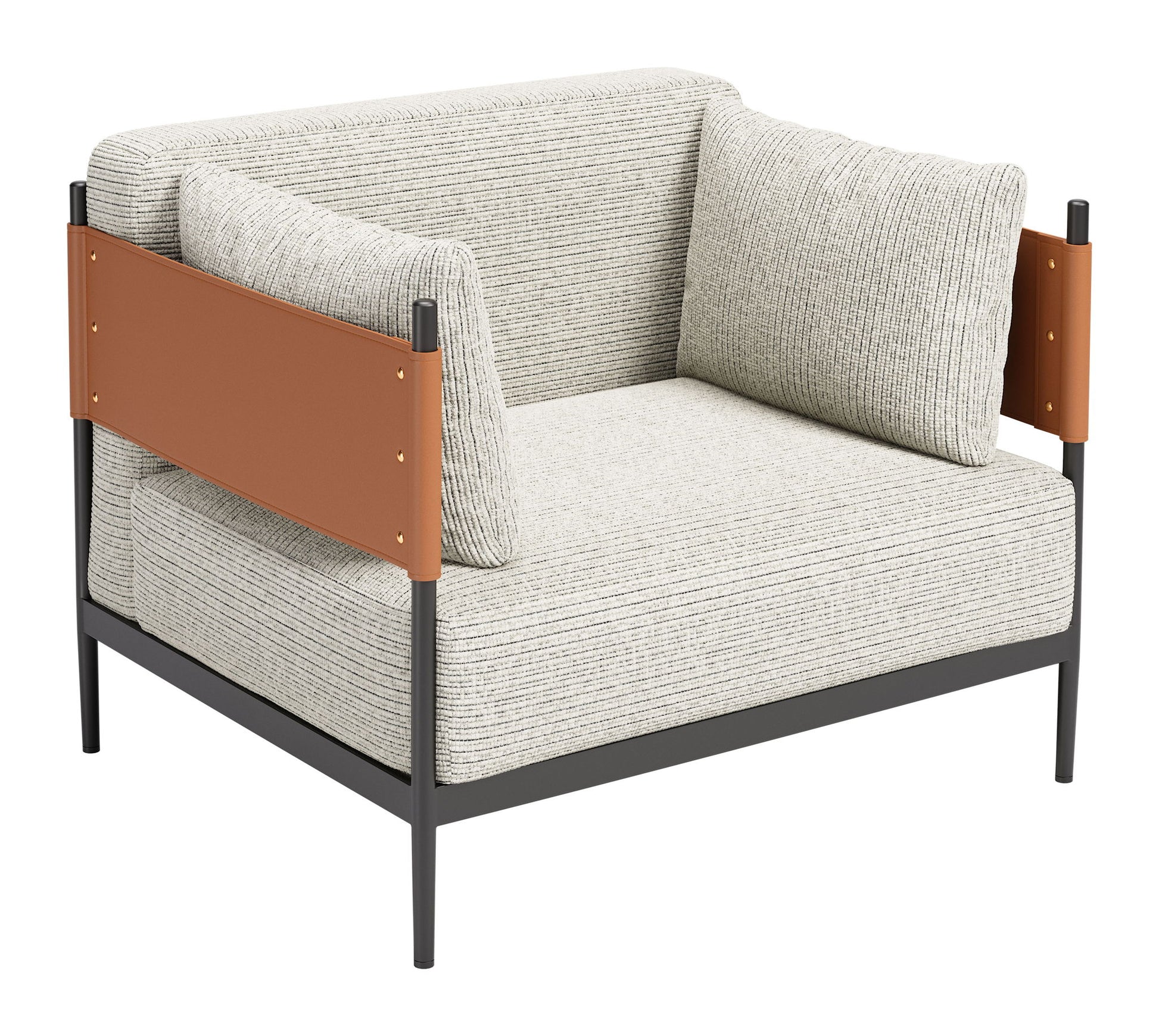 Introducing the Stirbe Armchair, a harmonious blend of modern design and industrial aesthetics. This armchair features fabric-wrapped cushions that provide both comfort and a stylish touch, all supported by a sturdy steel frame. Its versatile design is equally at home in a chic hotel lobby or an industrial loft living space. The Stirbe Armchair not only offers a comfortable seating experience but also adds a contemporary edge to your decor. Embrace the fusion of modern elegance and industrial charm with the Stirbe Armchair, where style meets resilience effortlessly.