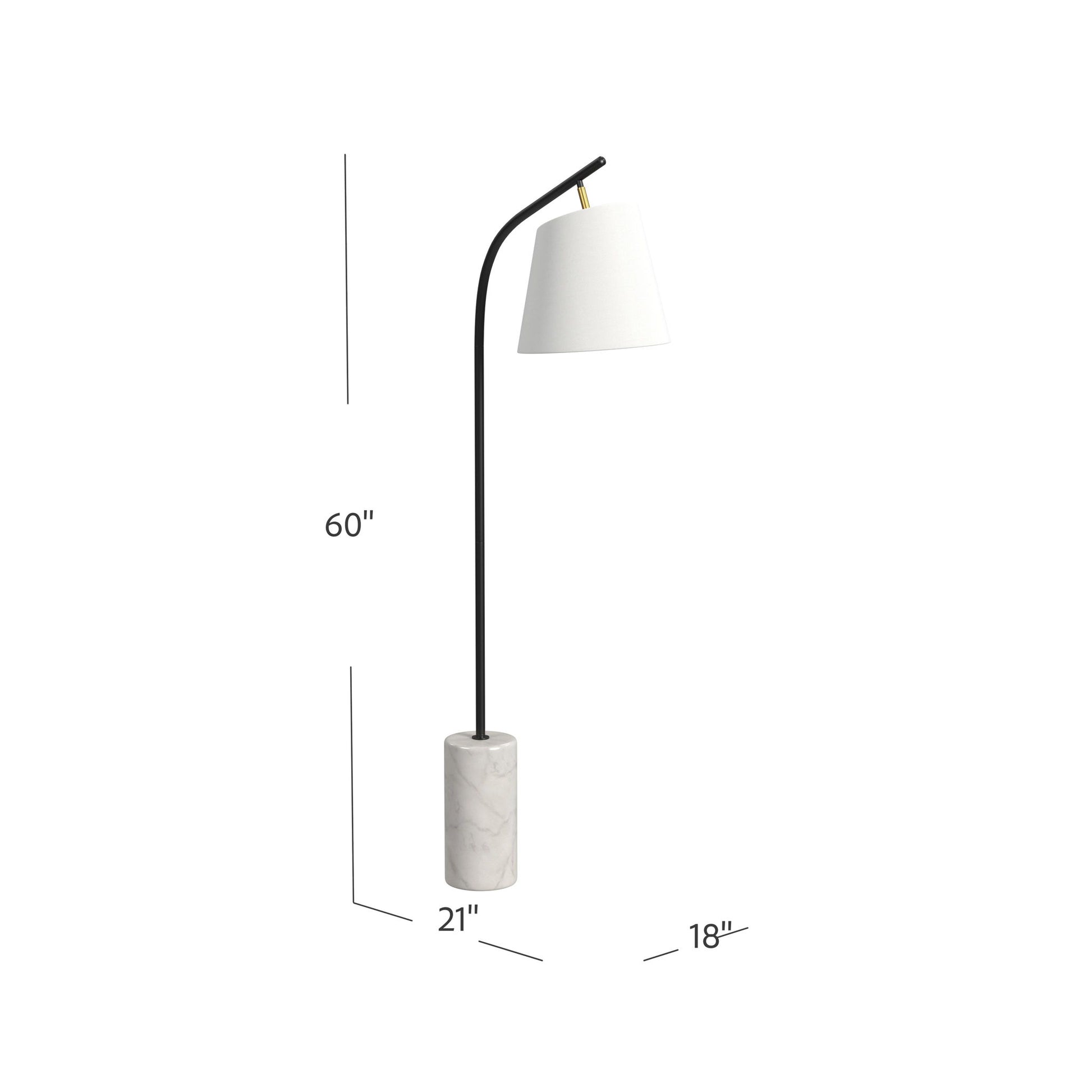 The Studio Floor Lamp showcases impeccable craftsmanship, constructed from durable metal with a sleek black finish and anchored by a luxurious white marble base. Its contemporary design is highlighted by a crisp white linen drum shade, adding a touch of elegance to its modern aesthetic.