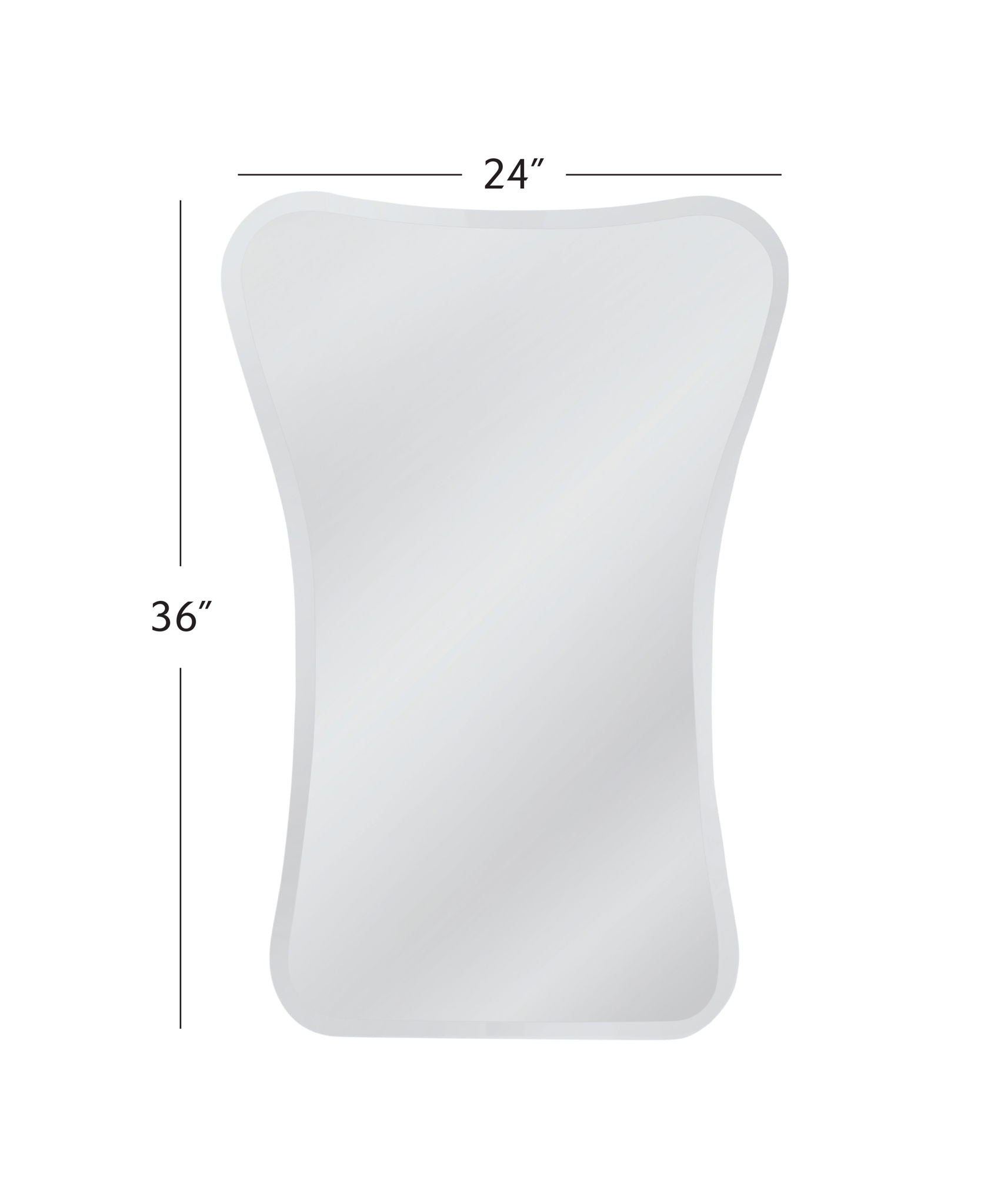 The Sullivan Wall Mirror boasts a contemporary design with clean edges and an hourglass shape adorned with rounded corner detailing. Its timeless appeal makes it a versatile addition that effortlessly complements any space.
