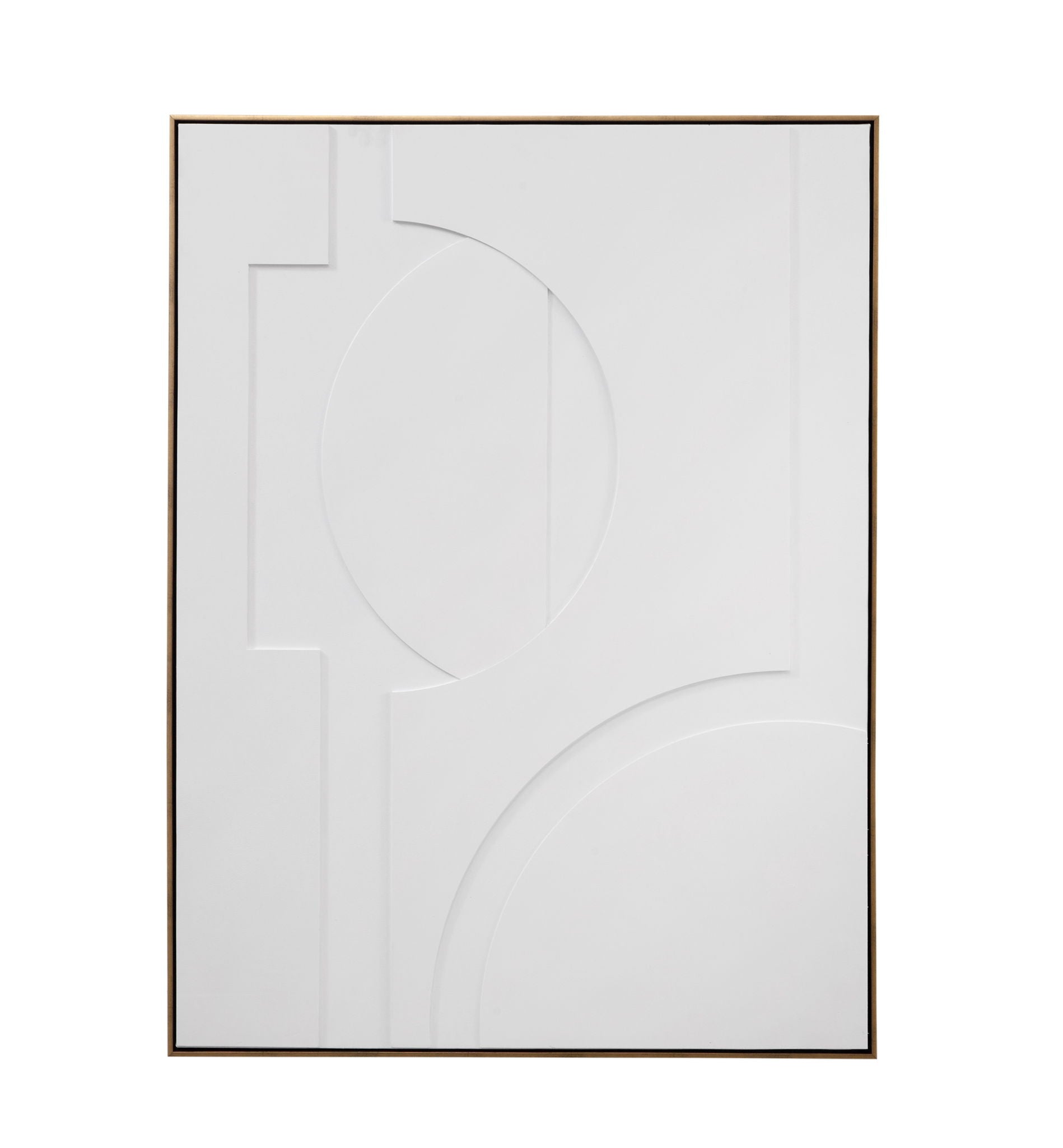 The Lonious is a wall hanging featuring a relief geometric design with gold molding.