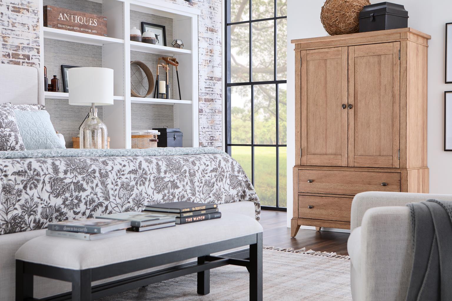 Today's Traditions by Trisha Yearwood features two distinct finishes to accompany oiled bronze hardware. The style of the collection is updated traditional with a nod to historical Shaker influences. The upper case of the pieces has slight banding to give dimension and eye appeal and the legs are tapered. The collection also features random board selection for a vintage feel and soft distressing to give a "generational" appearance. Overall this collection combines traditional design elements and modern touches with a vintage feel to create a unique and stylish look.