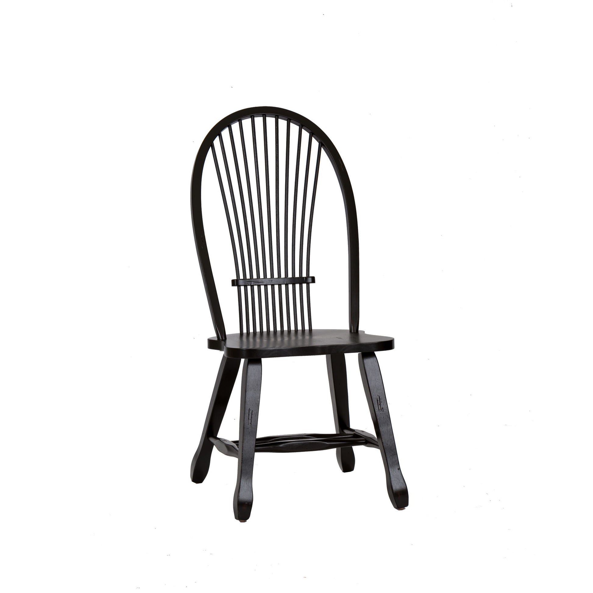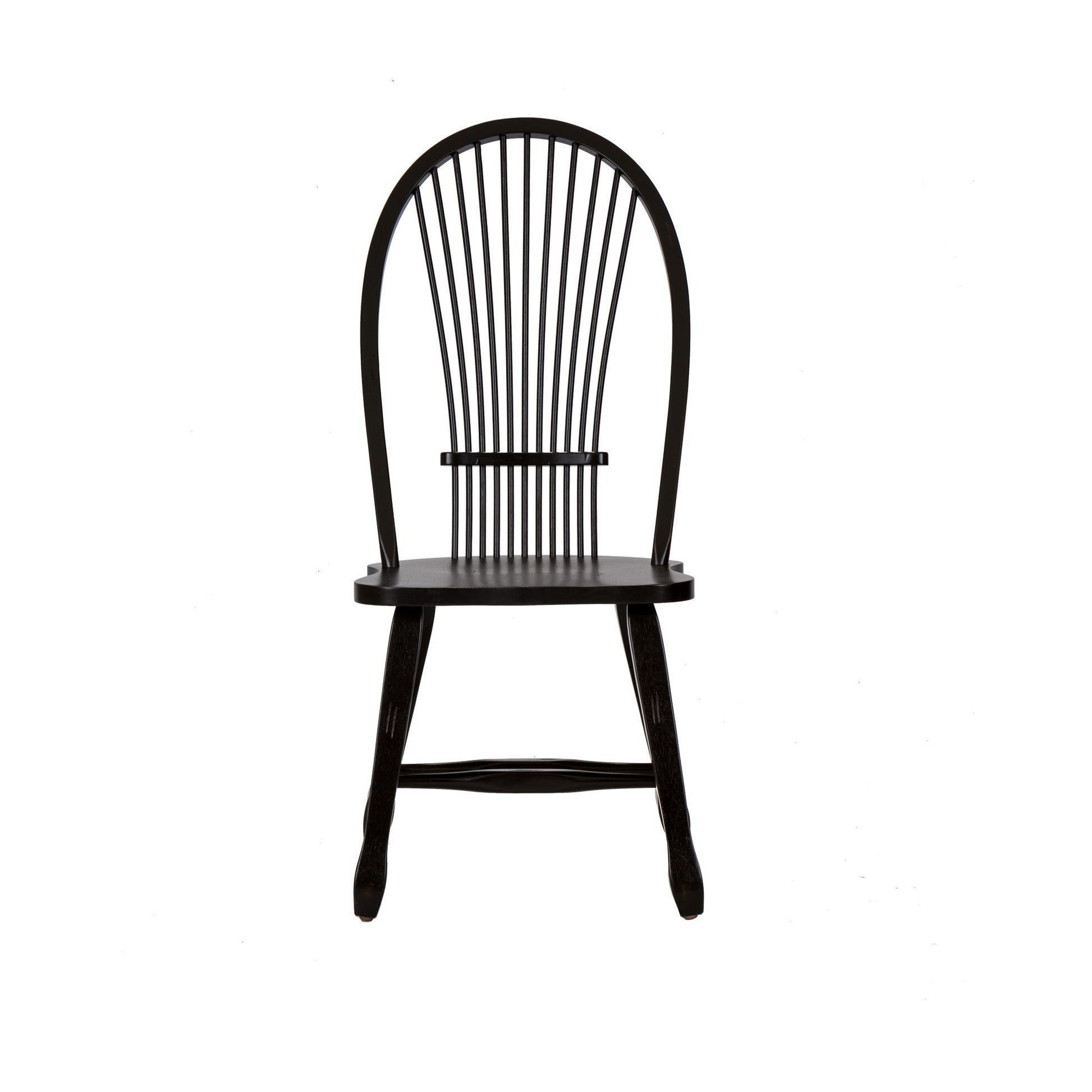 Design possibilities are endless with the Treasures five-piece rectangular table set. Crafted of rubberwood solids and oak veneers, this set features a finish and includes the leg table and sheaf back side chairs. The table has a fixed planked top with wood peg accents and tapered legs. The chairs have saddle shaped seats for added comfort and an H shaped stretcher for extra support as well as nylon chair glides to protect your flooring. Treasures offers simple shaker styled dining in a subtle finish which evokes the feel of a treasured antique.