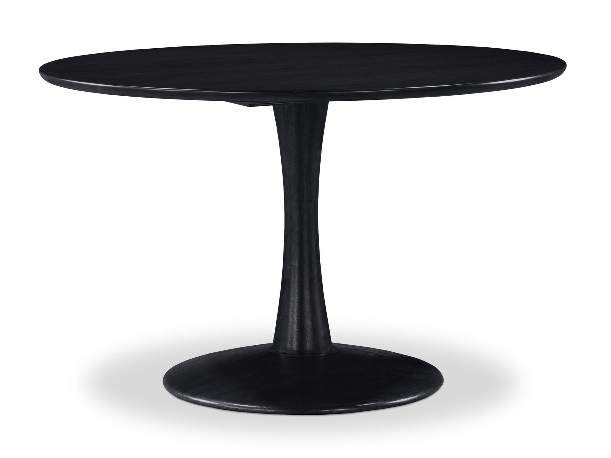 Set the stage for small, intimate dinners for just the two of you with this Tulip Dining Table. Its cozy yet chic design is ideal for small spaces, featuring a timeless pedestal style that offers ample legroom for comfortable dining. This elegant and sleek table comes in a rich finish, making it a great addition to modern dining spaces and eat-in kitchens. Constructed with solid wood, oak veneer, and natural wood grain variation, it has a substantial feel, while its midcentury modern design elements ensure it stands out.