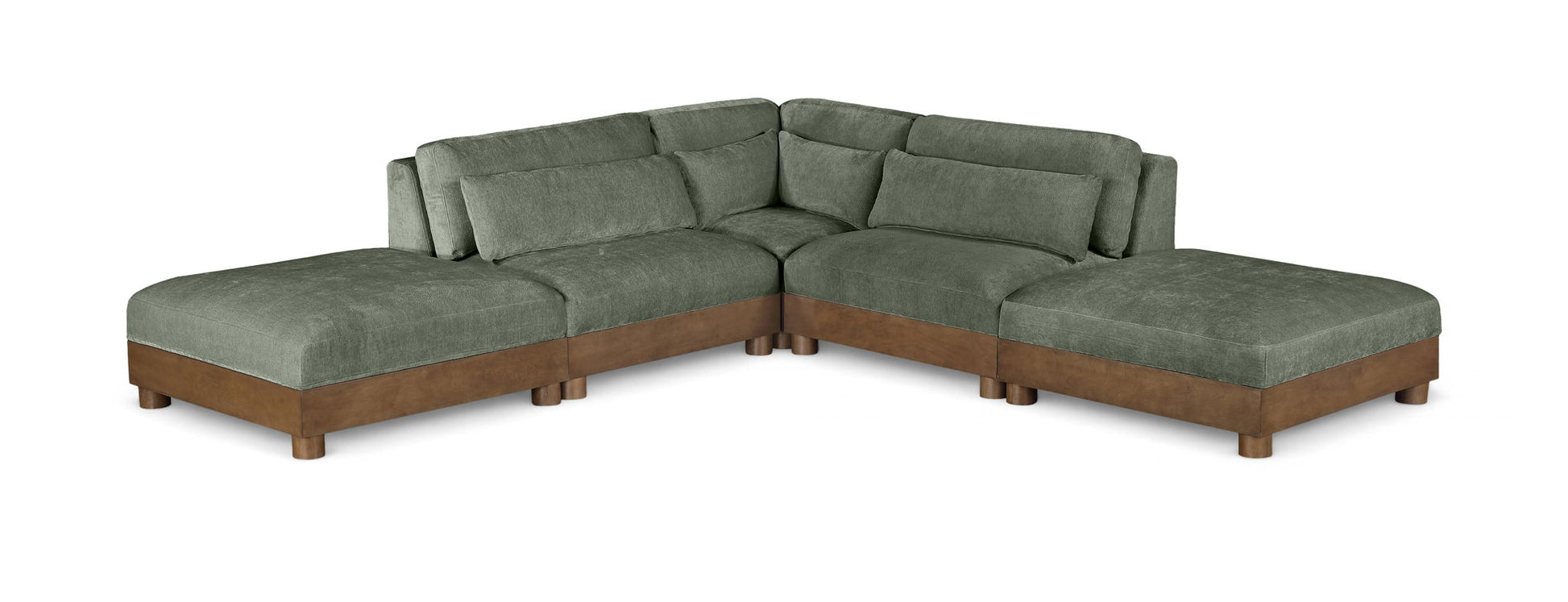 Turin - 5 Piece 200 " Fabric Upholstered Modular Sofa - Green