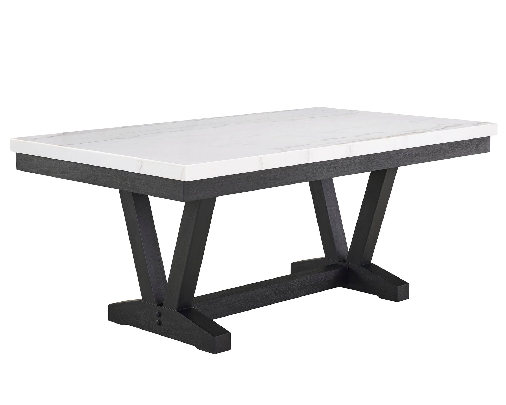 A fresh take on a traditional silhouette makes this group a great addition to your dining space. A genuine marble top is luxurious and timeless. The trestle base is updated in a contemporary finish. The upholstered dining chairs feature gently sloped wings and a nail head trim on the back. Button tufting accents the dining bench.