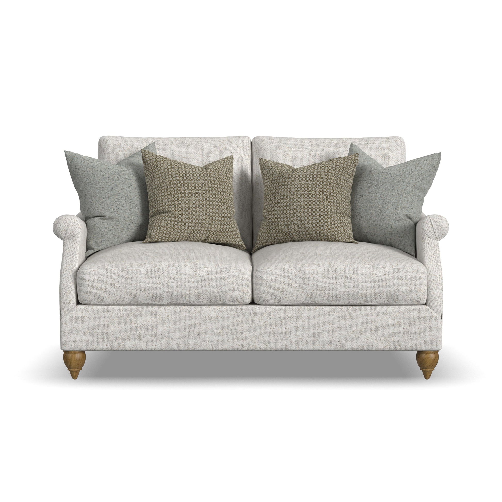 A Fresh Take on Timeless Style. Traditional elegance gets a fresh reinterpretation with the Veda loveseat. The petite, pleated roll arms slope down onto stately legs, delivering timeless details and graceful curves that soften the room while adding an abundance of charm. Generous seat space, cushion fill choices, and the Blue Steel Spring at the heart of each seat ensure lasting comfort. And bring your room together with four accent pillows, orderable in your choice of fabric.