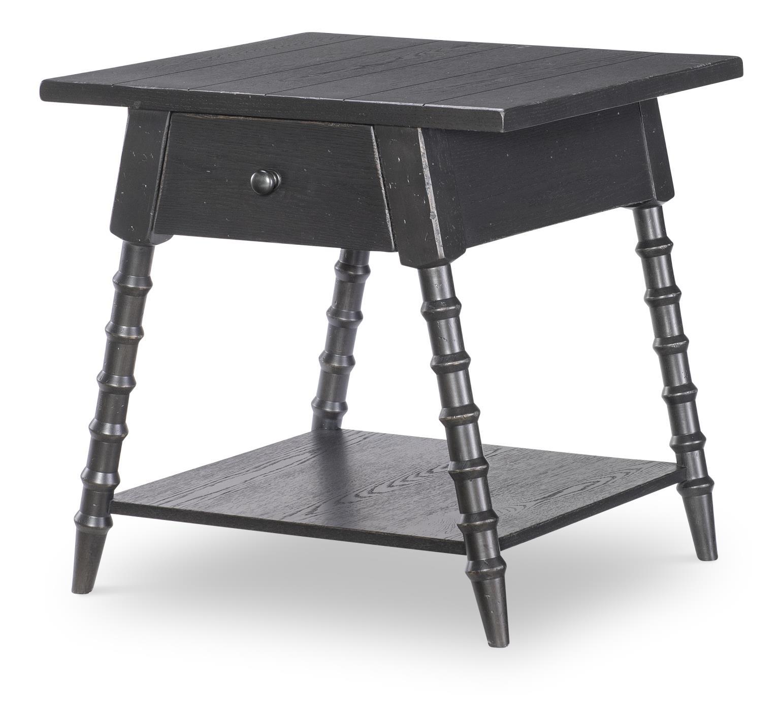 Vintage Market - Splayed Bobbin Leg 1 Drawer End Table - Kettle Black
