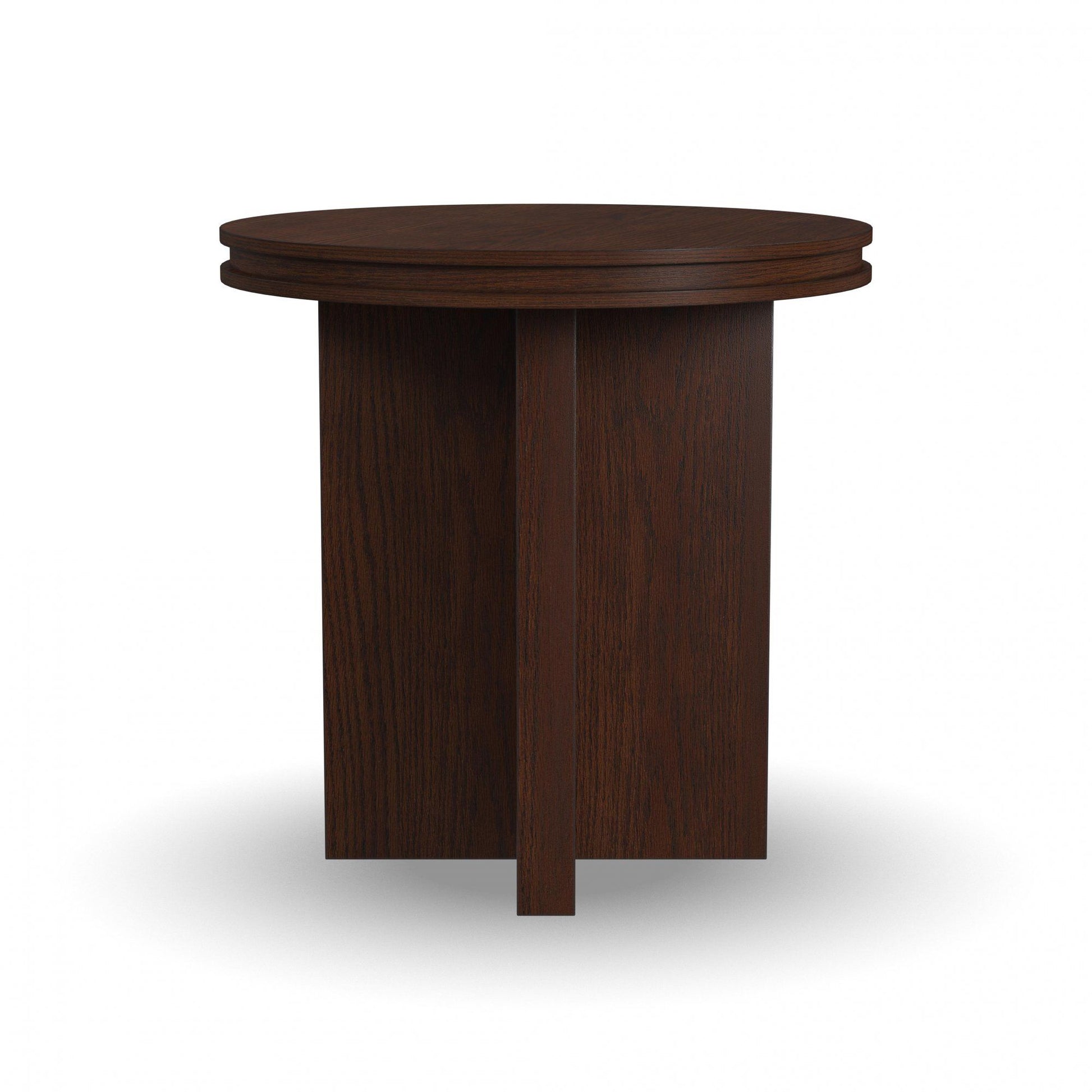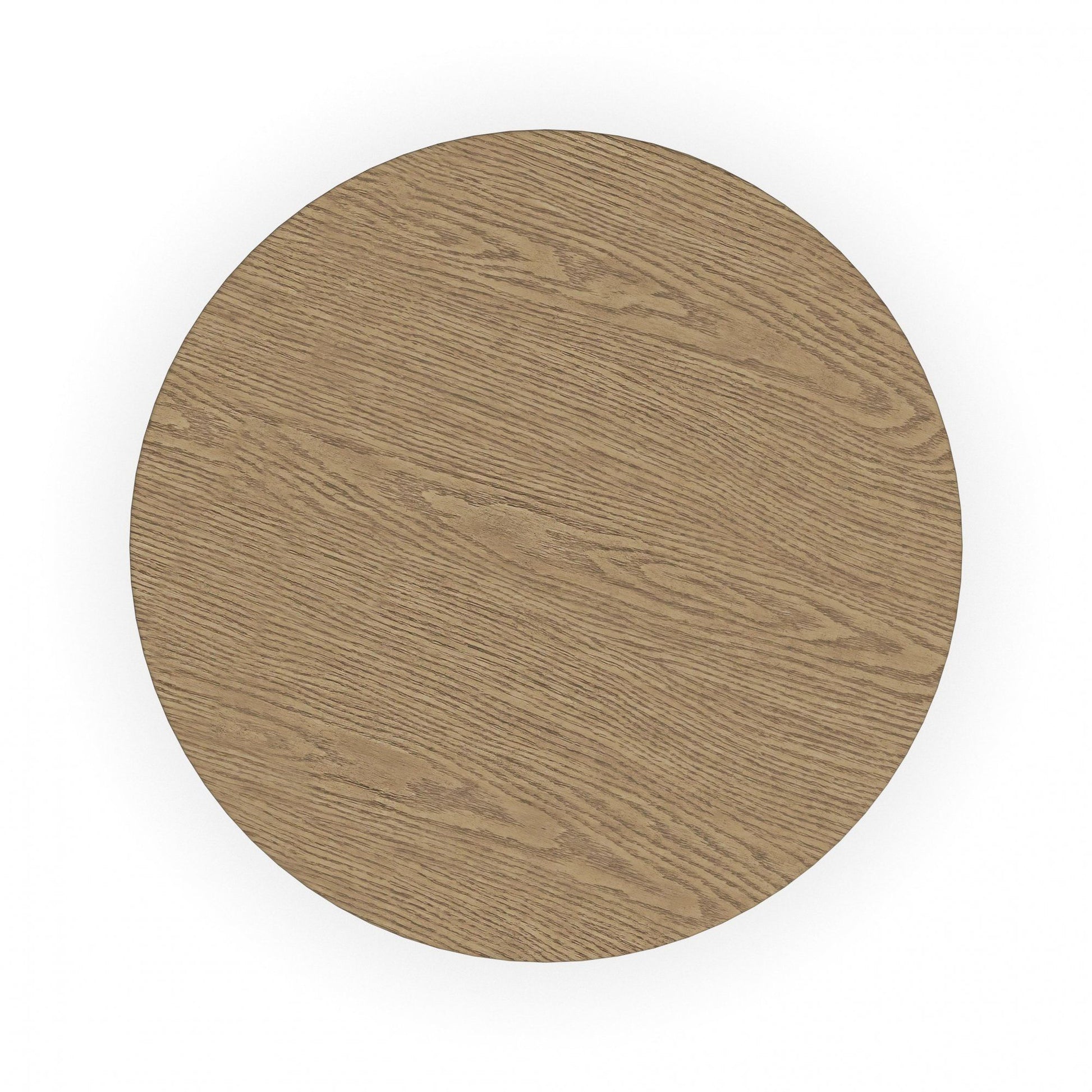 Add effortless style and architectural appeal to your living room with the Waterfall round end table. This striking table features a timeless silhouette defined by clean lines and simple geometric shapes, including a substantial sculptural crisscross base that supports the top. Group and nest this table with the coordinating Waterfall round coffee table for added visual interest and function. The Waterfall round end table is well-crafted from solid rubberwood with oak veneers and features a warm, light oak finish for lasting beauty.