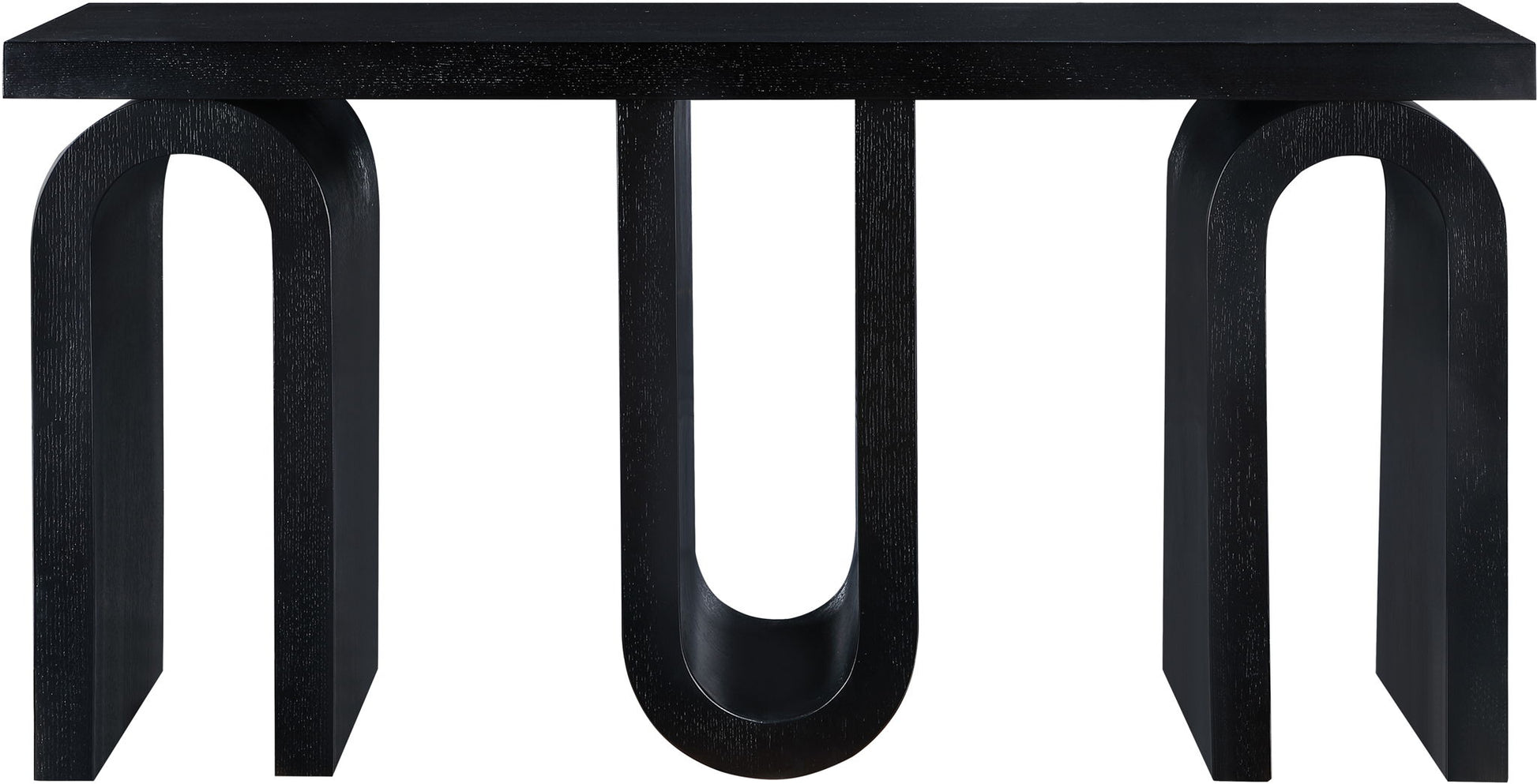 Bring a tailored look to your room with this Westbourne black console table. This handsome table's rich finish and oak veneer are the epitome of timeless elegance, while the contemporary design features an artfully styled triple base to instantly draw the eye. Perfect for displaying decor or organizing essentials, it merges functionality with sophisticated aesthetics. Enhance your entryway or living space with this versatile piece that promises to complement modern interiors with its streamlined silhouette and impeccable craftsmanship.