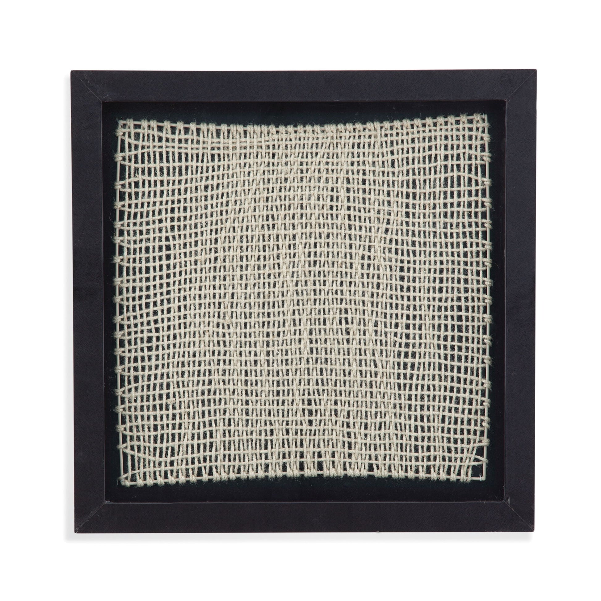 Woven Wall Art is uniquely crafted piece of art featuring woven jute in a geometric pattern framed in a shadow box under glass in a black frame.
