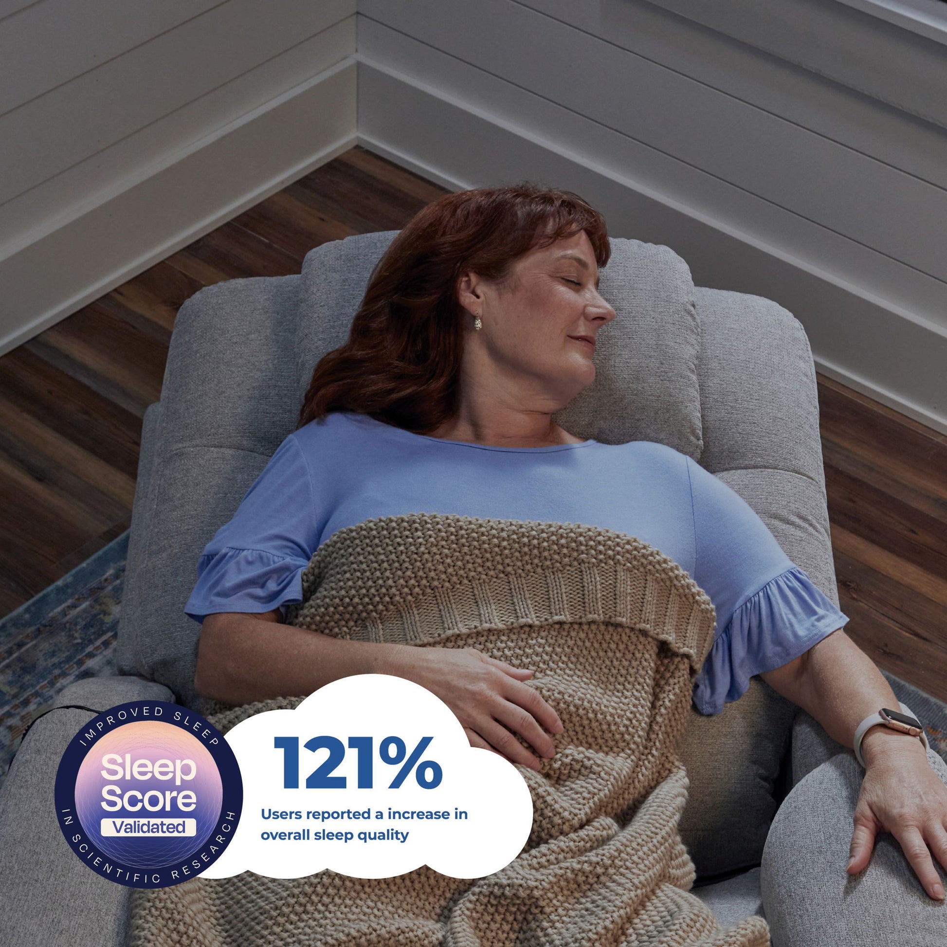 Cozy up in the Zecliner Model 2 Power Lift Sleep Chair, your perfect family recliner by day, and haven for peaceful sleep by night. The zoned memory foam comfort areas in the backrest, seat, and shoulders; removable cooling head pillow; padded arms; and waterfall chaise provide surrounding comfort. The hand wand control lets you customize your comfort. Zero Gravity puts you in a state of weightlessness, and power lift assists when standing. This recliner is armed with reliable performance fabric upholstery that repels stains and spills, while being easy to clean. With Flexsteel’s patented Blue Steel Spring™ at its core, this recliner has surrounding comfort for relaxation and slumber. Achieve blissful relaxation by day and a rejuvenating sleep by night with the Zecliner.